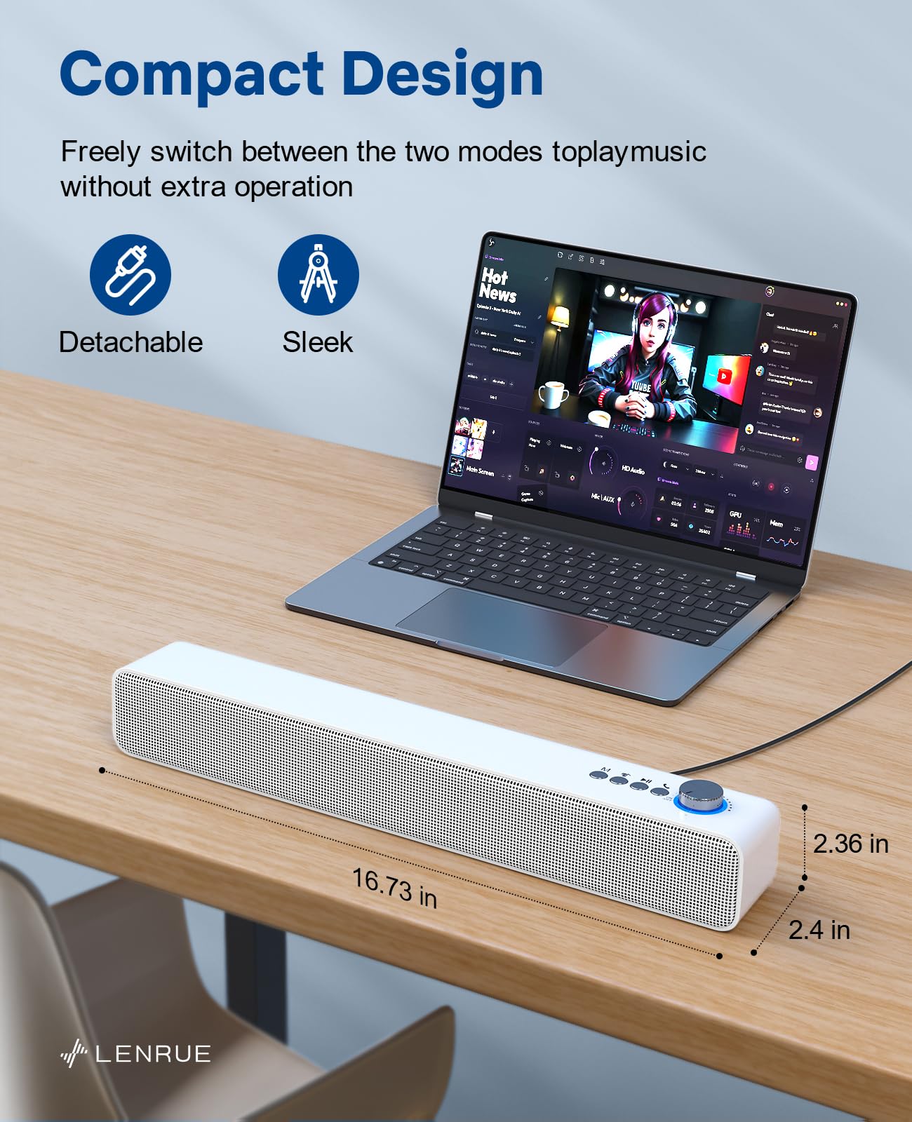 3 Sound Effects Modes - Switch at will with one click! The desktop speaker with single button to switch music, movice and game 3 sound effects modes, offers you superior auditory feast.