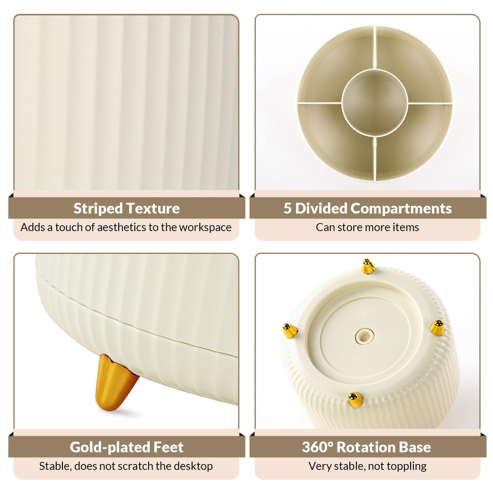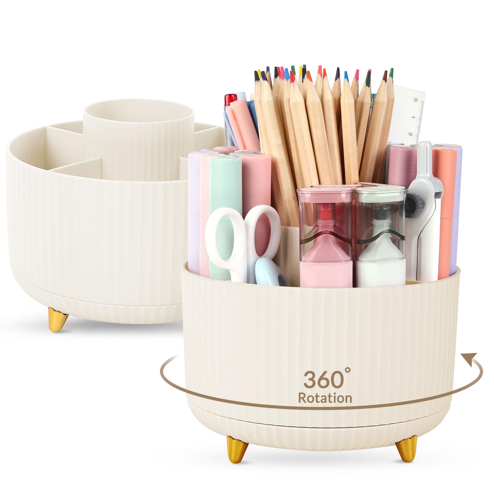 What You Get: This set includes 2 beige rotating pen holders and 2 non-slip mats. This desk pencil organizer is made with reliable materials for daily use, designed to keep your workspace neat and functional