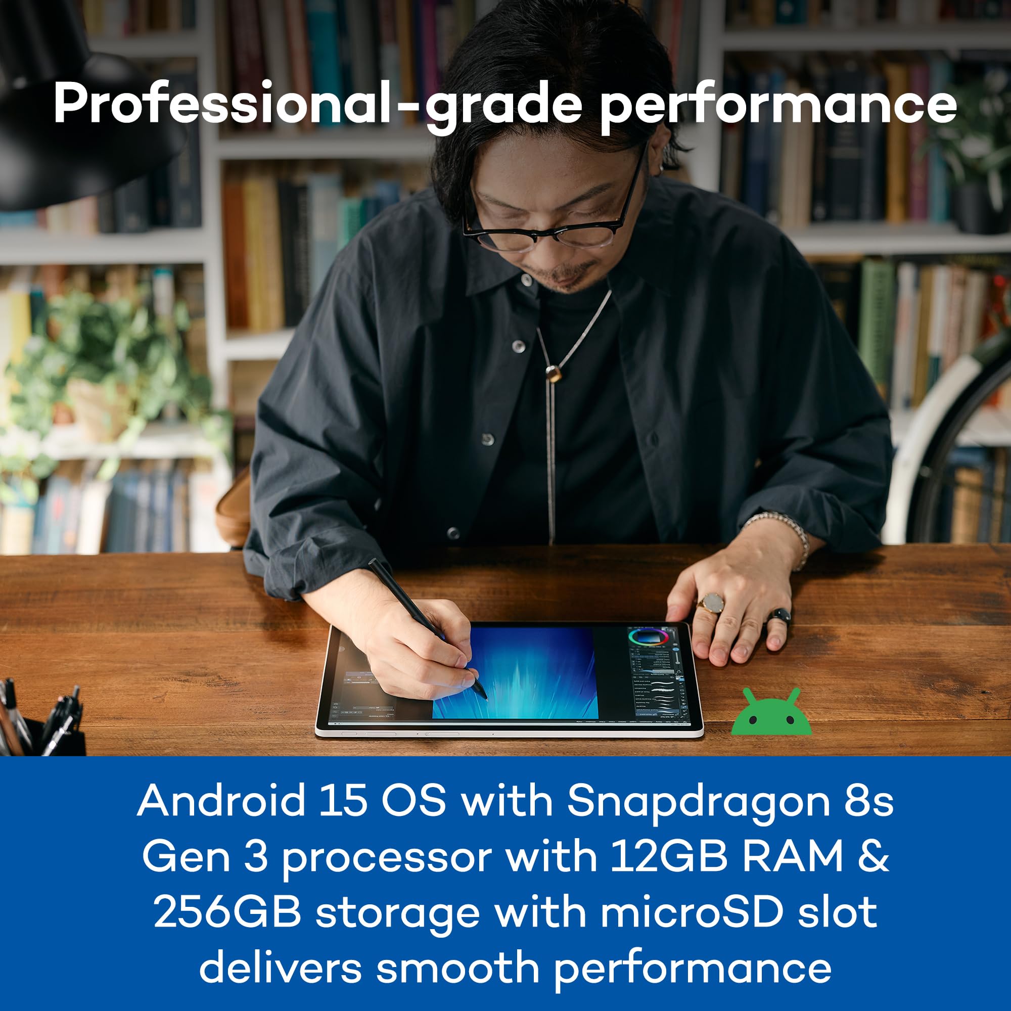 PORTABLE ALL-IN-ONE DESIGN: Thin, lightweight frame houses a creative studio powered by Android 15 OS w/included creative apps plus Google Play Store access - take professional-grade digital art anywhere without extra equipment
