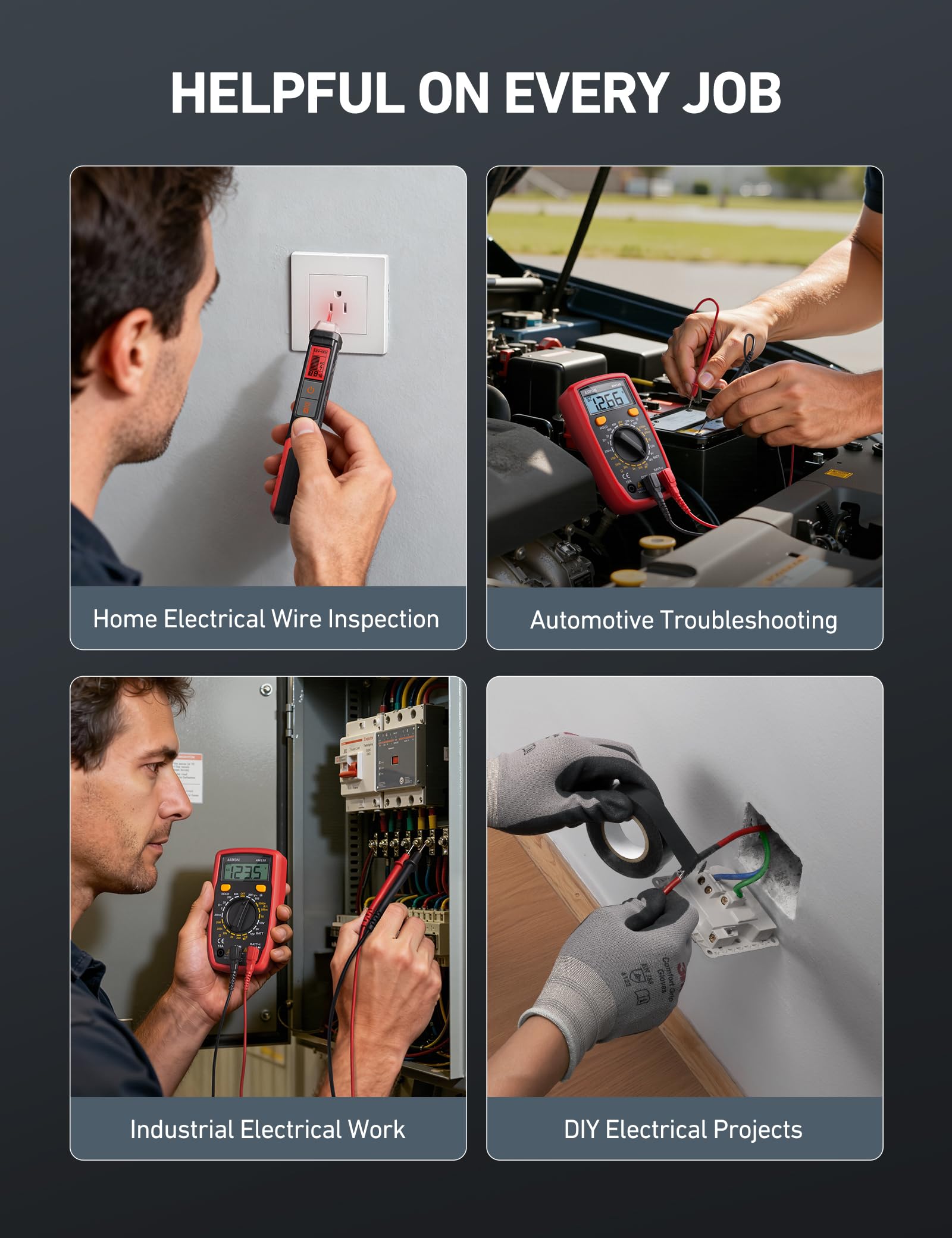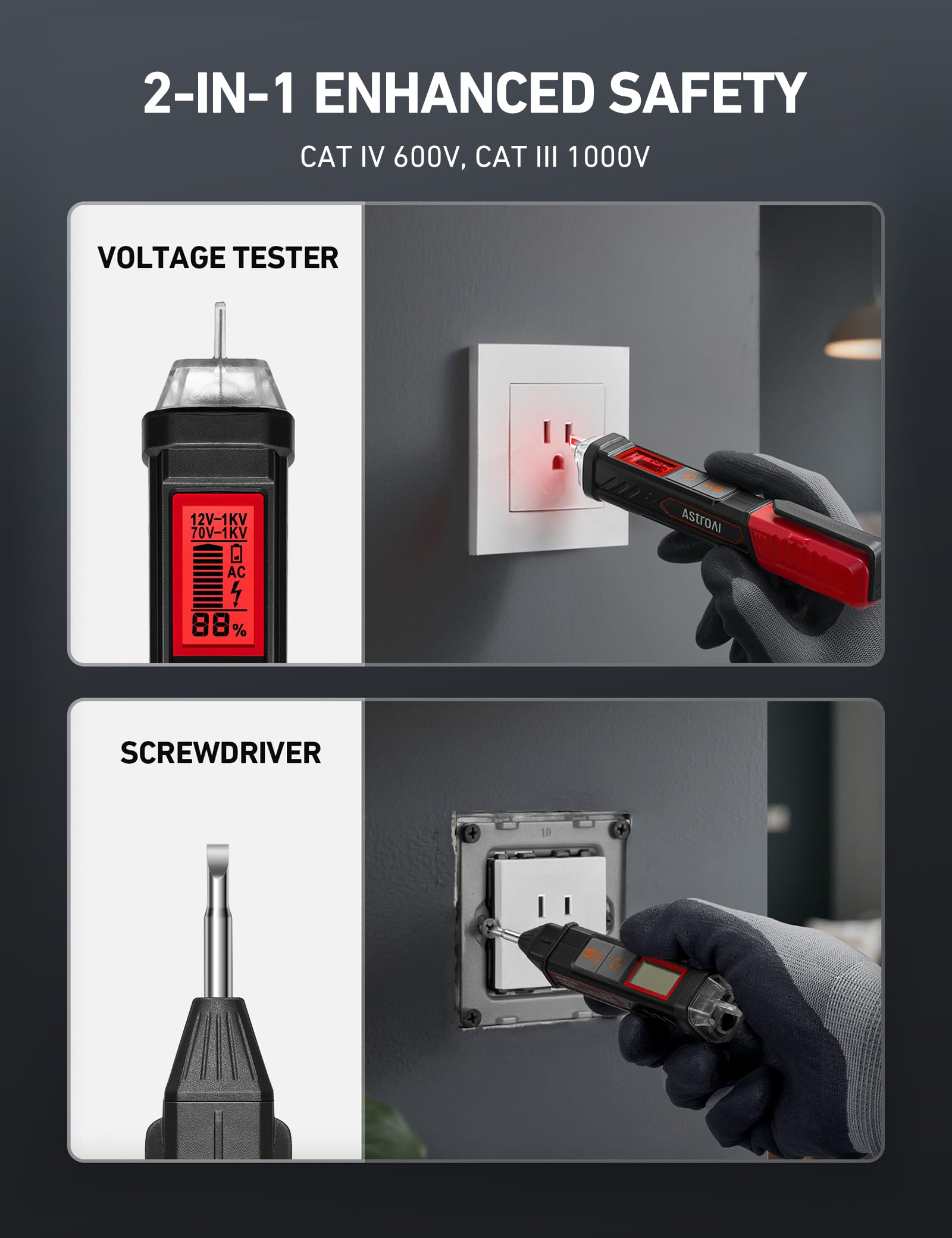 Professional Safety -- This voltage tester offers non-contact detection (CAT IV 600V / CAT III 1000V) for safe initial checks, while the multimeter (CAT II 600V / CAT III 300V) and insulating tape add layers of protection. This kit is ideal for both beginners and professionals looking for reliable, trustworthy tools.