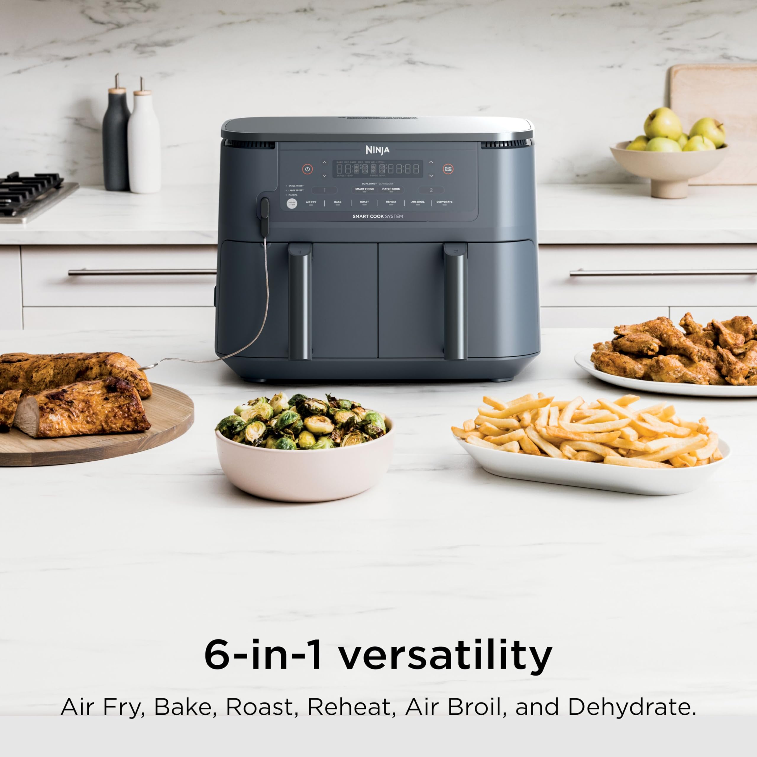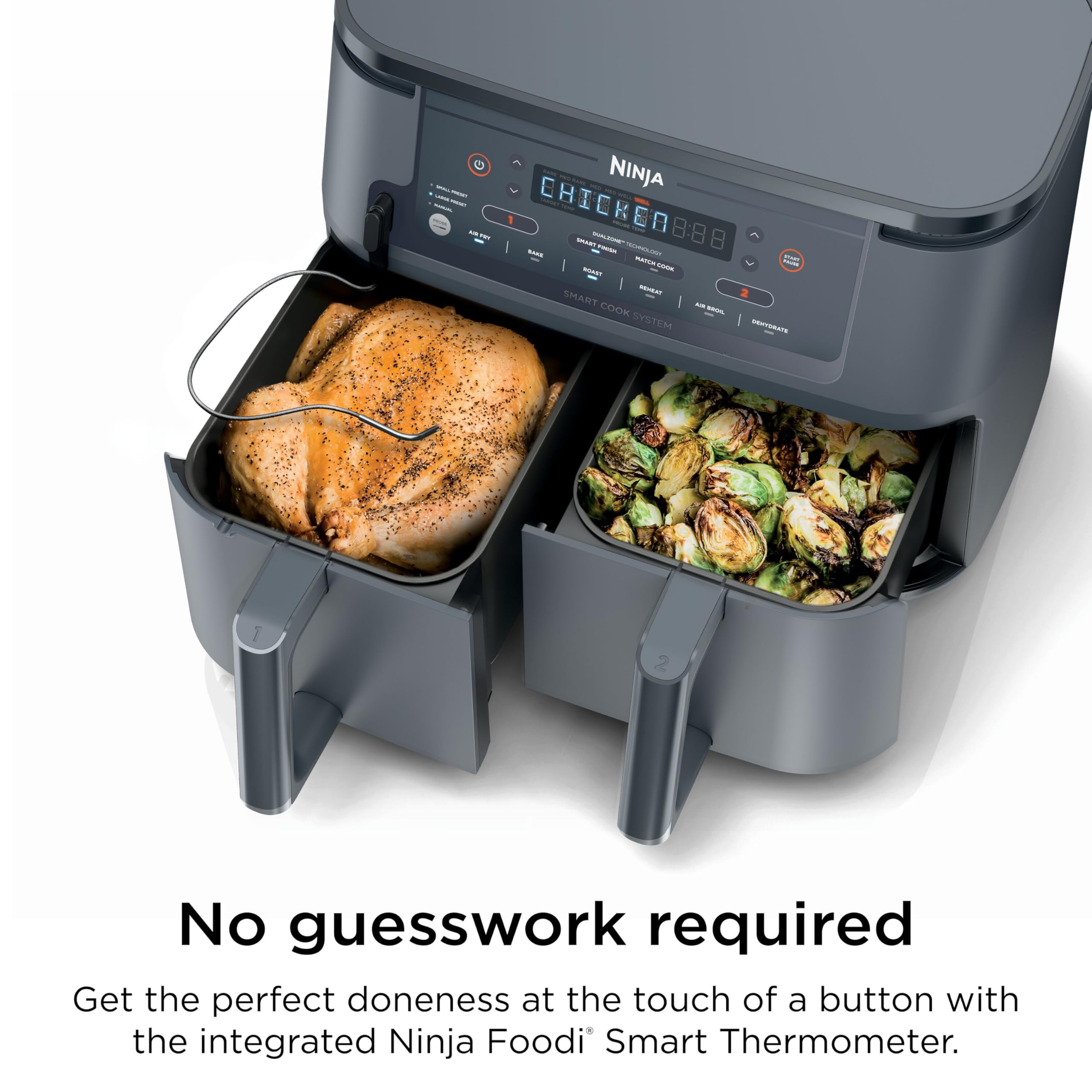 SMART COOK SYSTEM: Achieve the perfect doneness, from rare to well-done, at the touch of a button with the integrated Foodi Smart Thermometer—no guesswork required.