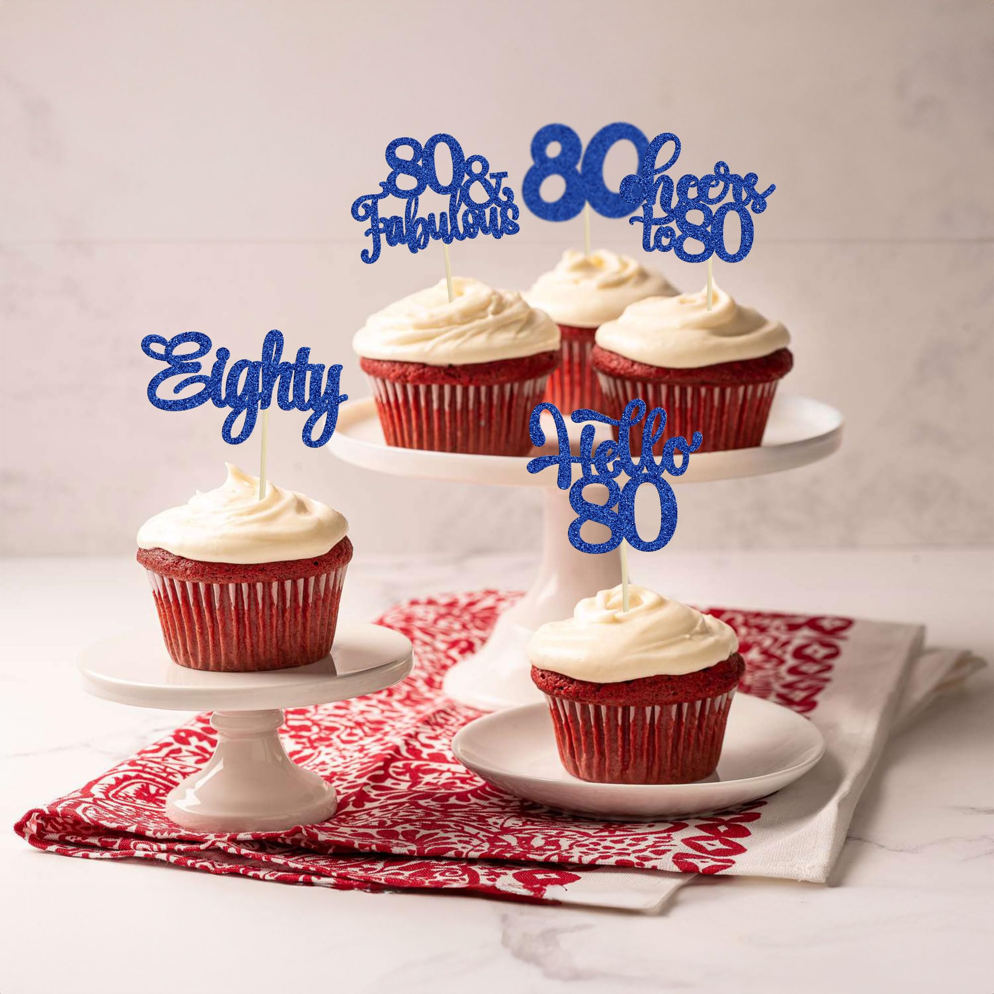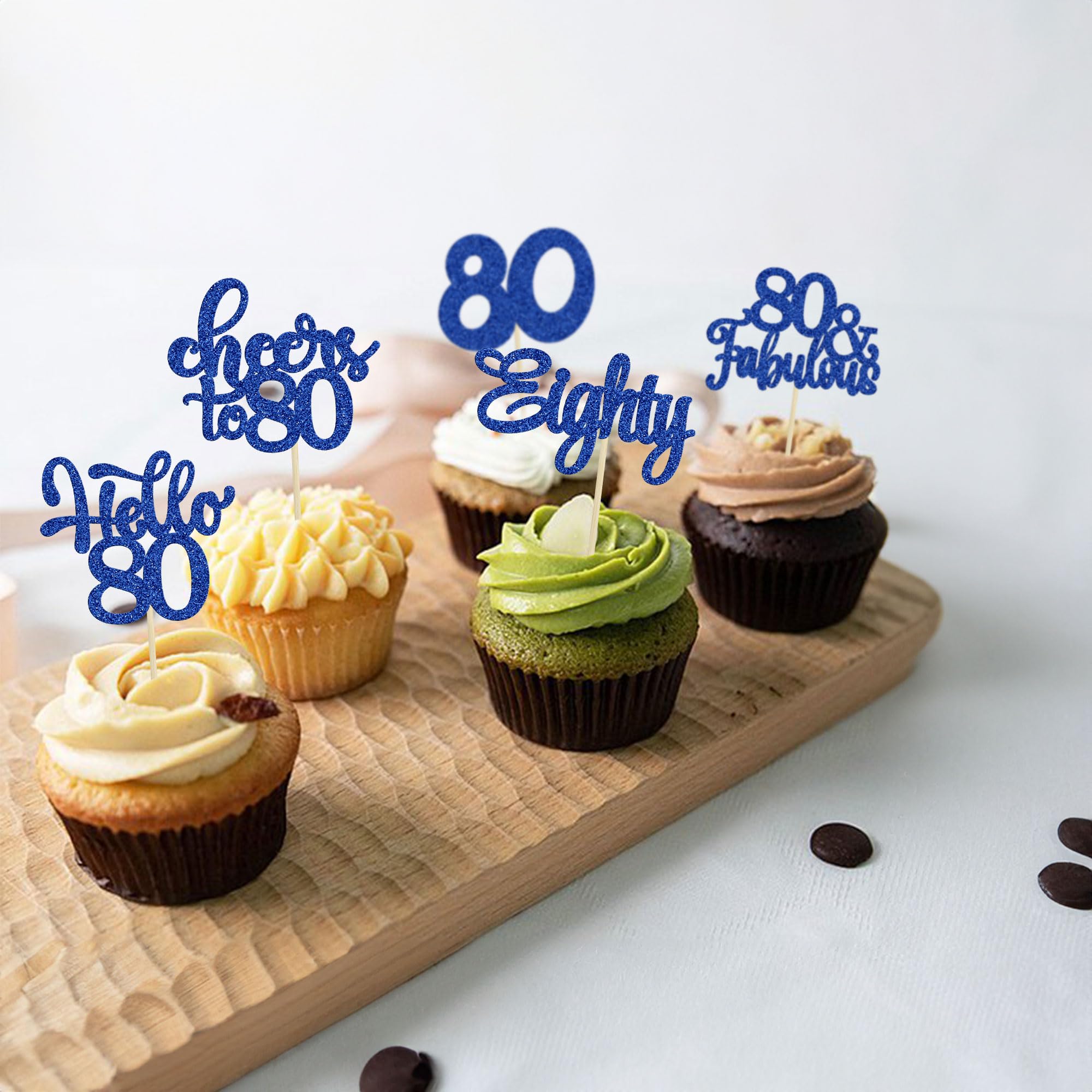 -These Happy 80th Birthday Cupcake Toppers are so cute and good for happy 80th birthday theme party, cheers to 80 years theme party, 80 fabulous theme party, happy 80th birthday anniversary theme party cake decorations. They can make your cupcake more attractive and bring the fun to your party. You can also apply them for ice cream, fruits, cookies and other desserts.