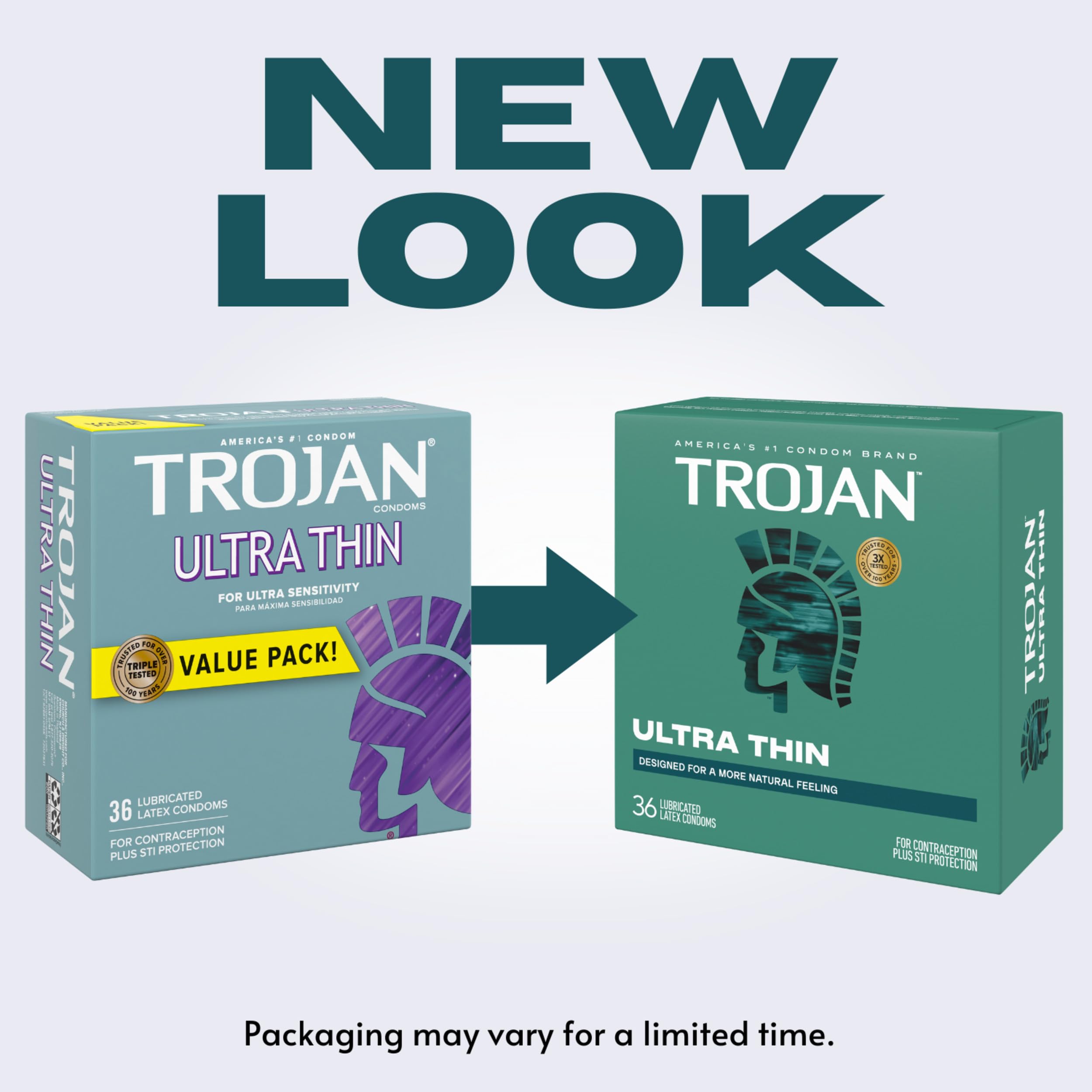 One 36 count box of TROJAN Ultra Thin condoms, designed to provide sensitivity