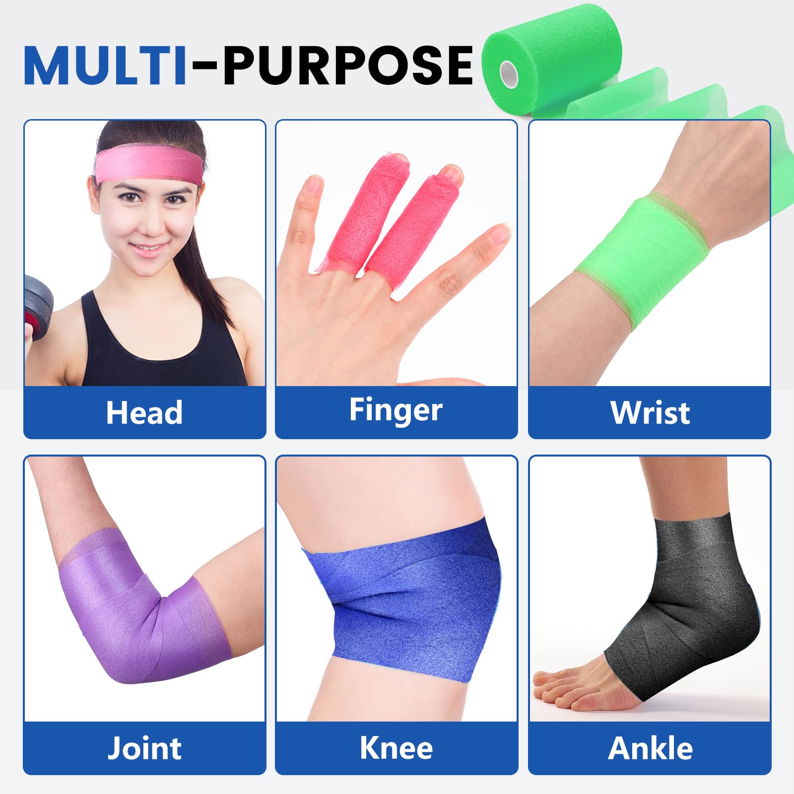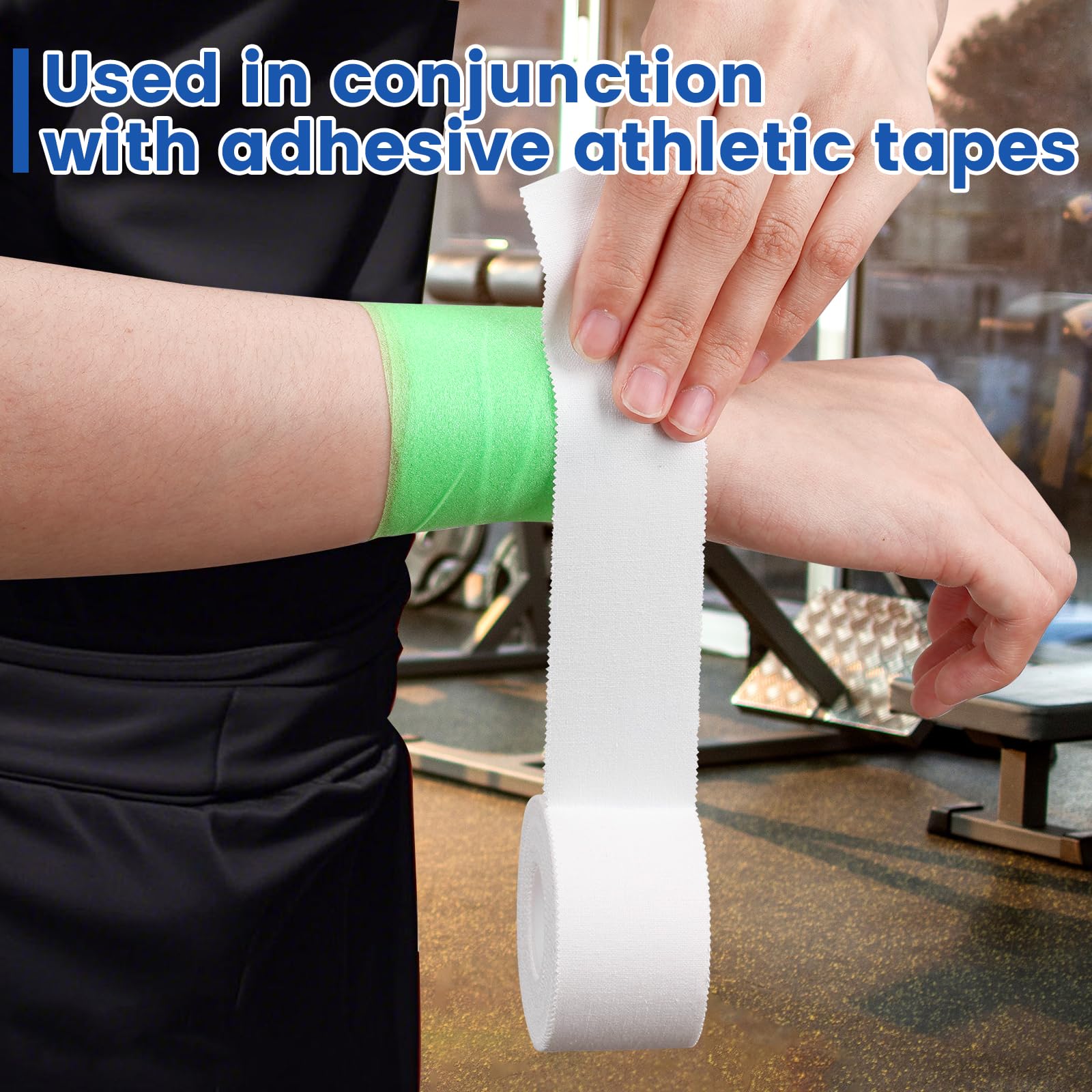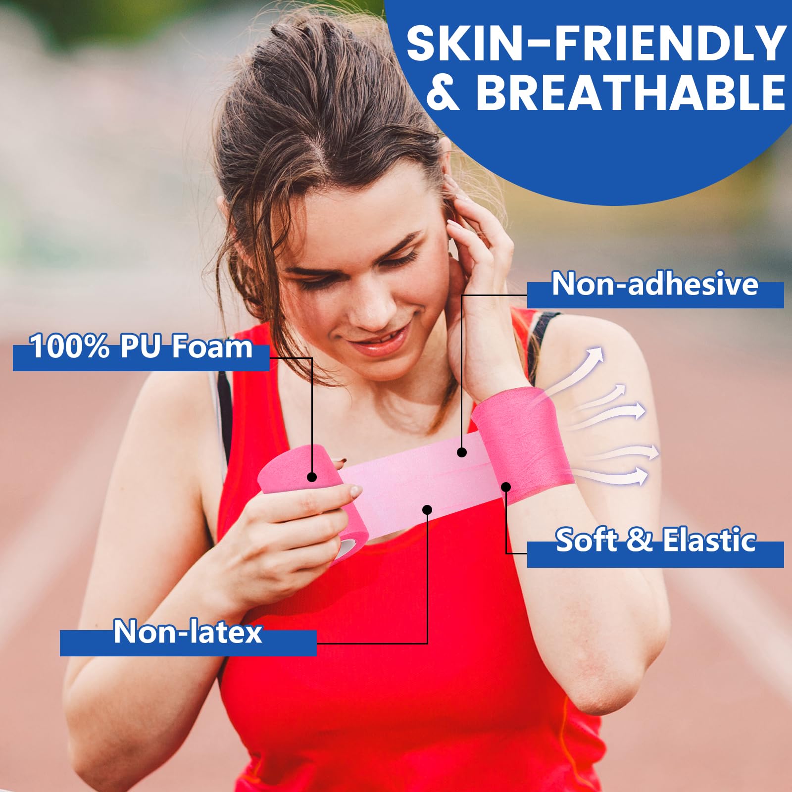 【Skin friendly & Breathable】Our prewrap athletic tape don't contain latex, They are soft, elastic and breathable, You can first wrap this prewrap tape around your skin and then use adhesive athletic tape, The latex-free material helps minimize discomfort