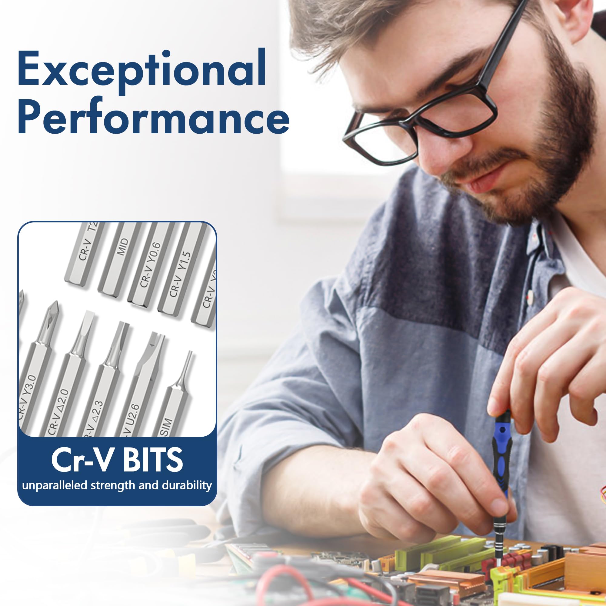 Durable Durable CR-V Bits - Built with high-quality CR-V steel, this electronic bit set delivers superior strength and wear resistance for daily repairs. Precision-machined bits provide a snug fit, helping reduce stripping and extend the life of both screws and tools. A true precision driver set for daily electronic repairs.