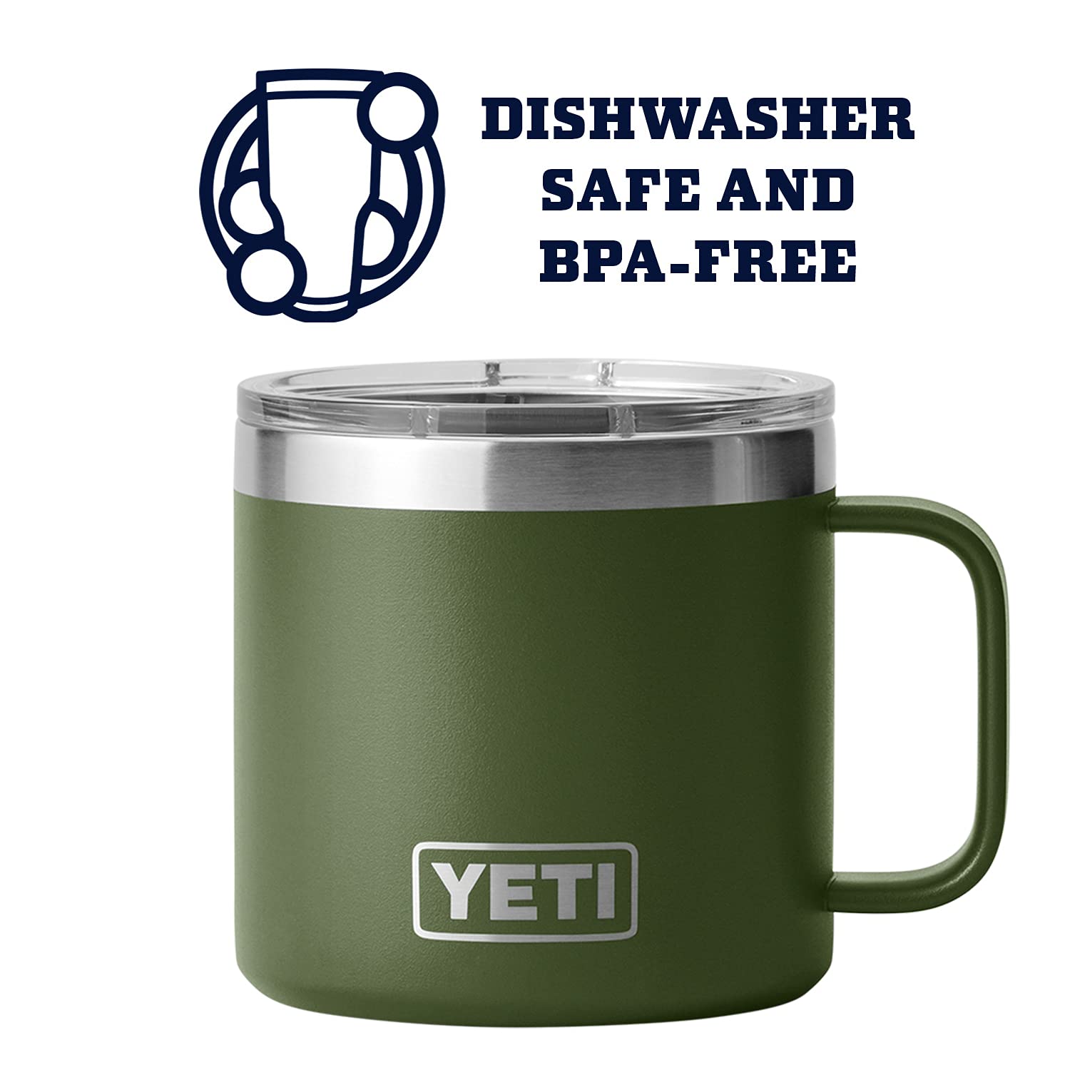 YETI Rambler 14 oz Stainless Steel Vacuum Insulated Mug with Lid Many camping mugs don’t stand a chance in the wild. But when you’re bleary-eyed, drinking coffee around a campfire in the backcountry, creature comforts like a hot mug of joe give you enough fuel to push on. So we decided to make a mug of our own that could withstand our off-the-grid adventures. The Rambler 14 oz. Mug is made of 18/8 stainless steel, so it’s durable enough to strap to the outside of your pack and go. Its full-loop TripleGrip Handle is comfortable for wider hands and easy to grab. It’ll keep your coffee hot (or water cold) for hours on end and still has the same Rambler features, like No Sweat Design and double-wall vacuum insulation, that makes this drinkware built for the wild.