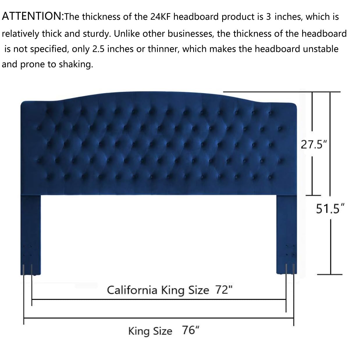 Product Size: King/California King --- 77.75”W*4.0"D*52.5"H;