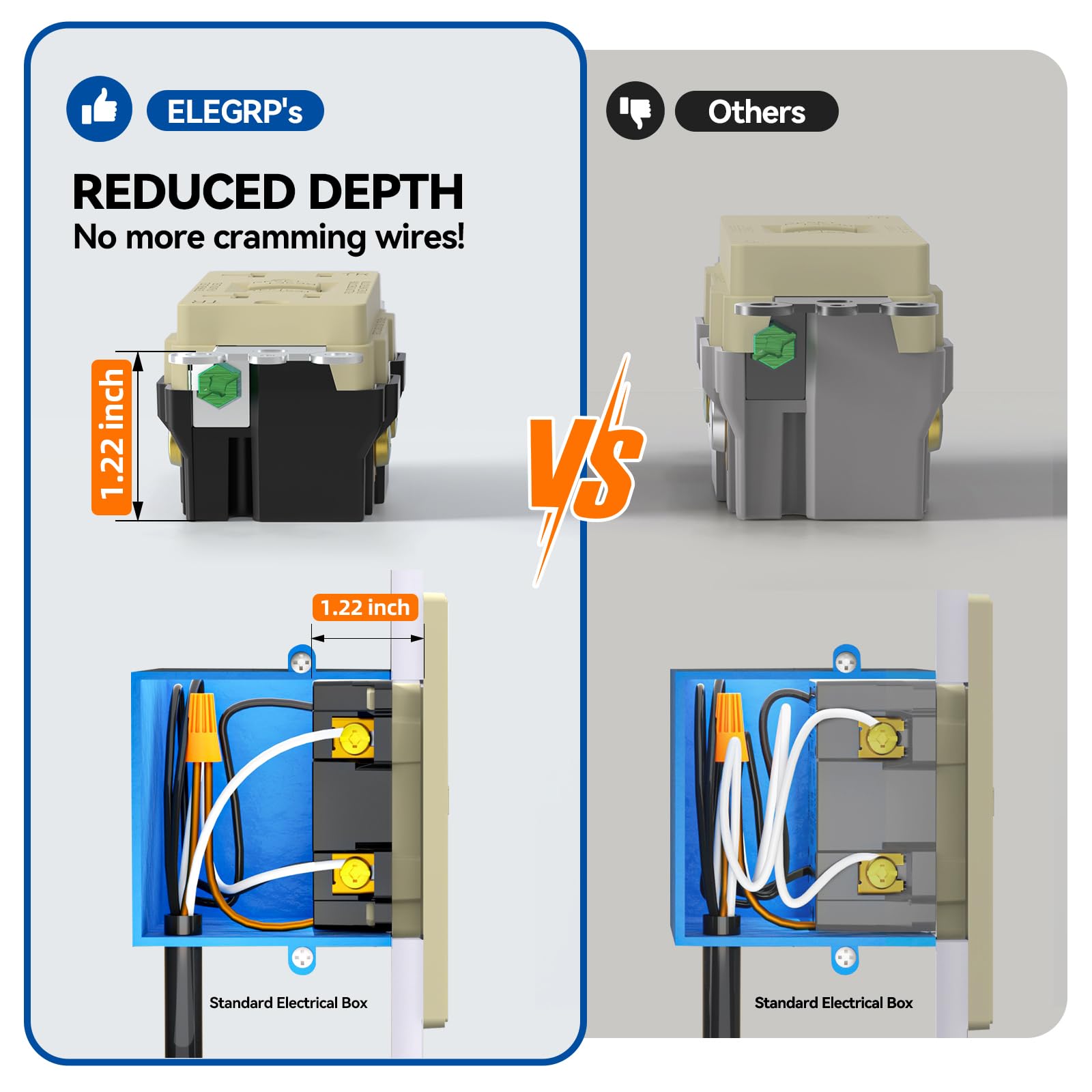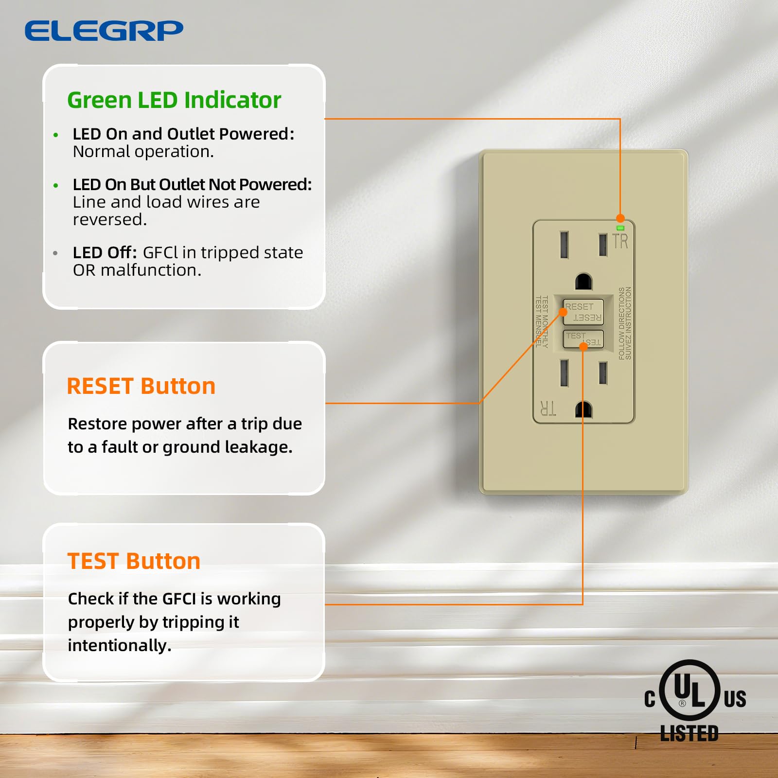 ✅【UL Certified & 3-Year Product Support】ELEGRP GFCI outlets rigorously tested to meet or exceed UL943 & UL498 standards for safety and reliability. Backed by 3 years of product support, ensuring long-term performance and customer satisfaction.