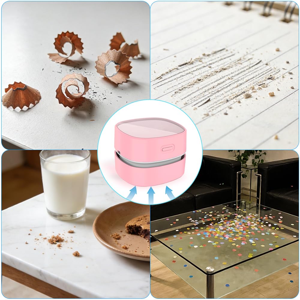 【Easy to operate& Long lasting material】Easy to operate, suitable for students and elderly. Portable and Cordless vacuum for your desktop for quick cleaning. You just hold it by your hand and move it. Our table cleaner will save from the annoying little mess in life and clean all around your home and car. Our table Vacuum Cleaner is made of high-quality clear plastic acrylic. It resembles glass but much stronger and safer with a chic display.