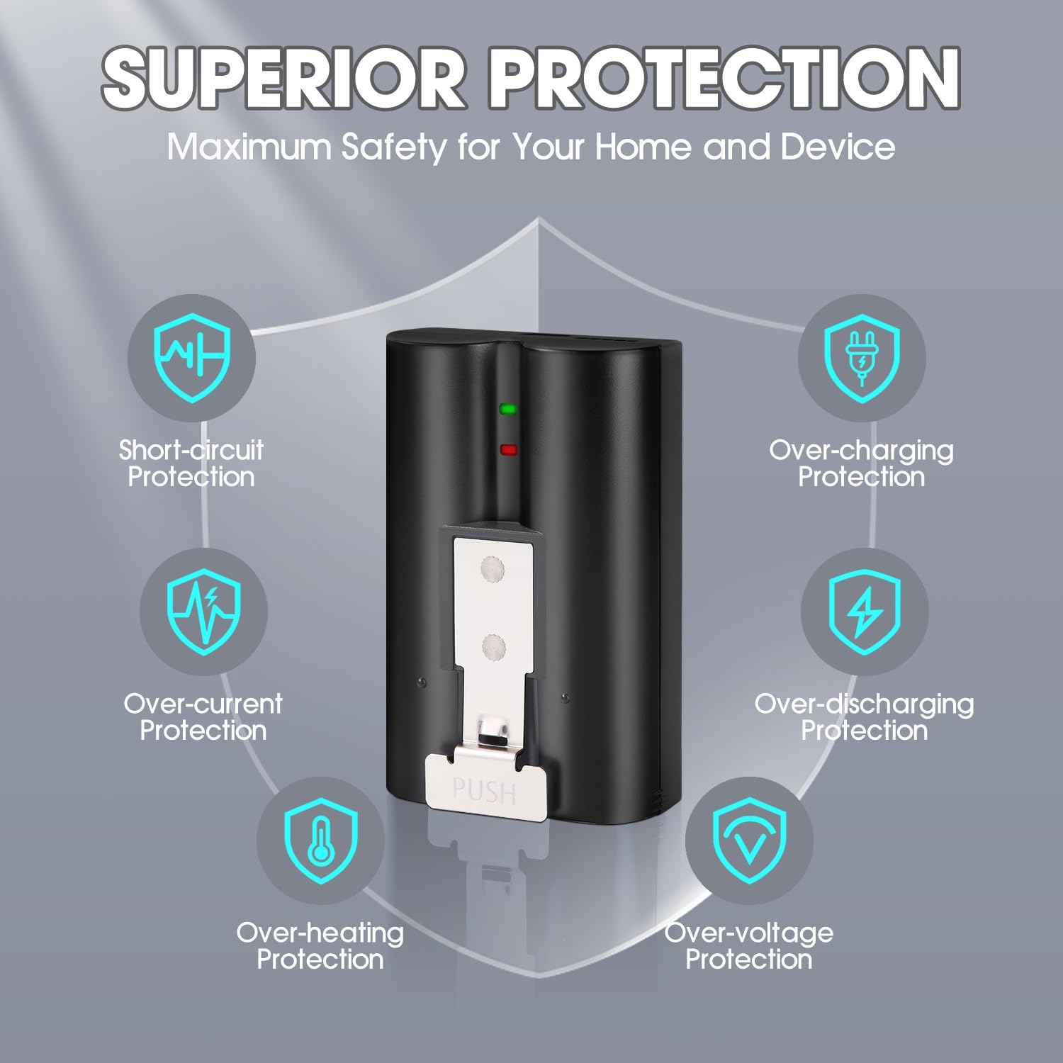 ✨【MULTIPLE PROTECTIONS & PREMIUM SAFETY】:Constructed with flame-retardant materials and built-in safeguards against over-charging, over-discharging, over-current, overheating, over-voltage, and short circuit.