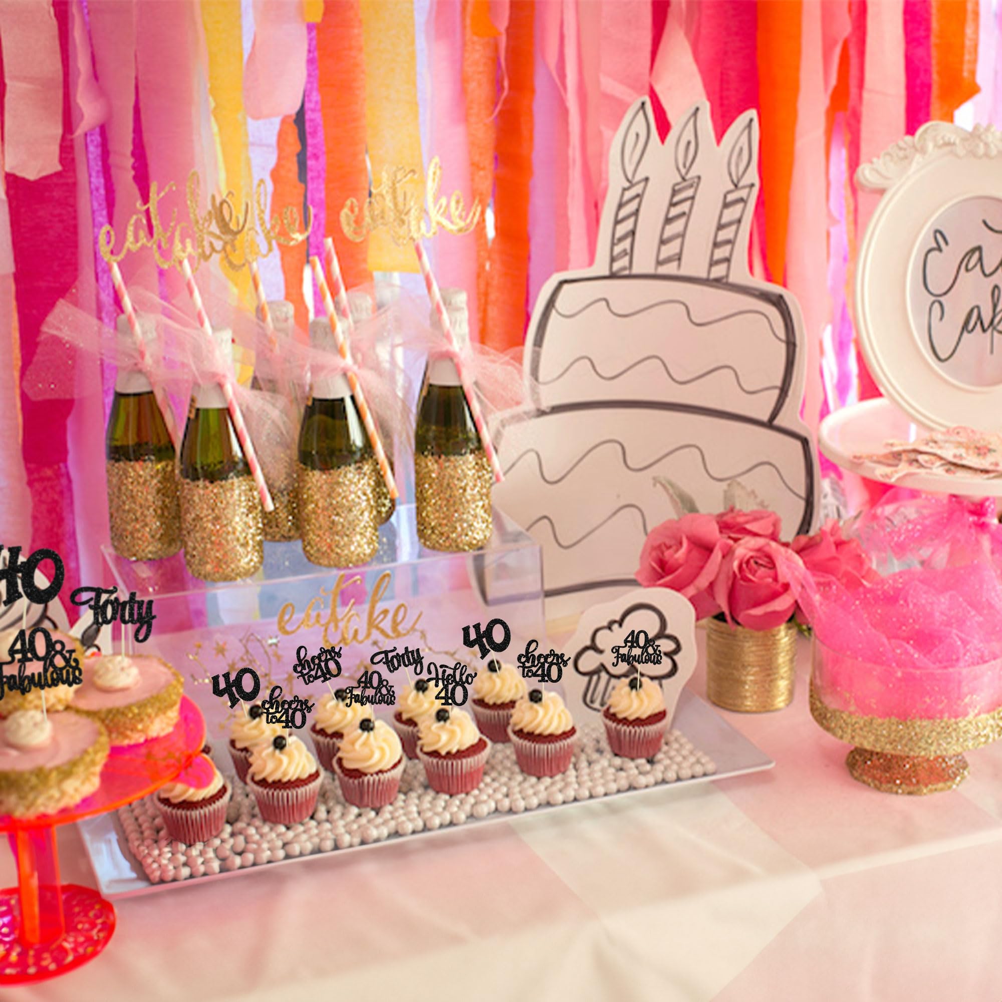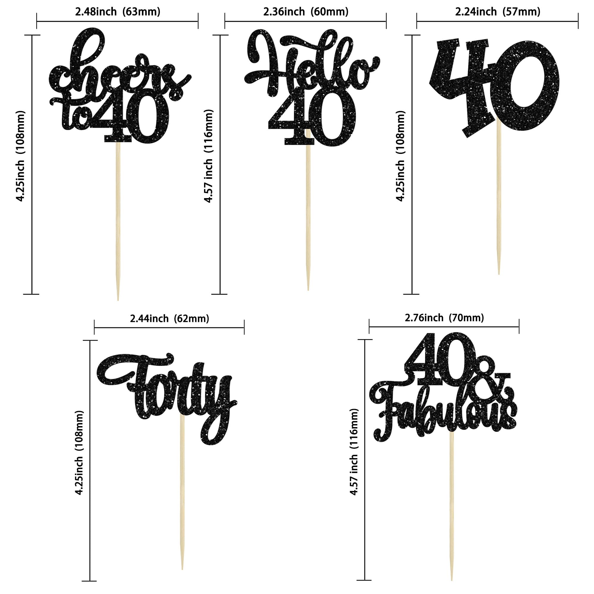 -These Happy 40th Birthday Cupcake Toppers are so cute and good for happy 40th birthday theme party, cheers to 40 years theme party, 40 fabulous theme party, happy 40th birthday anniversary theme party cake decorations. They can make your cupcake more attractive and bring the fun to your party. You can also apply them for ice cream, fruits, cookies and other desserts.