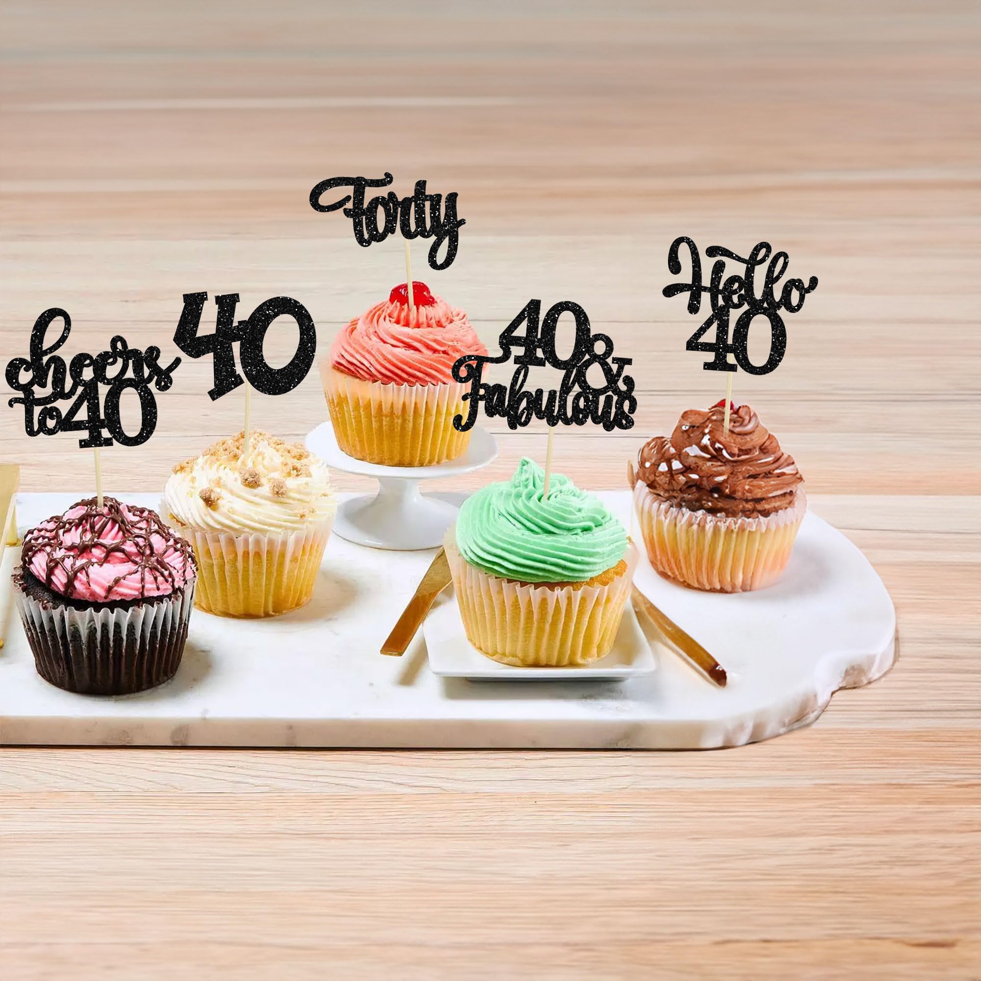 -Premium Material: These Happy 40th Birthday Cupcake Toppers are made of high quality 300 gram card stock and food-grade toothpick, very safe to put them on cakes, cupcakes, ice cream, fruits, pie, dessert, cheese or any dish and food appetizer you want to decorate.