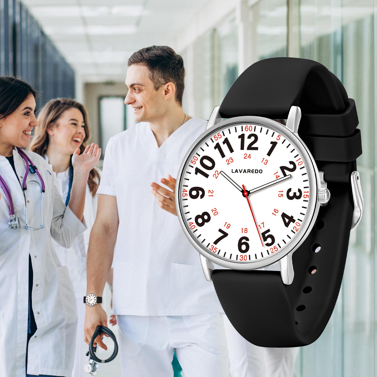 Professional Nurse Watch:The 3 hands analog watch contains high-quality Japanese quartz movement and high-visibility red second hand to accurately read the time and pulse.Simple design is equally suitable for both men and women.