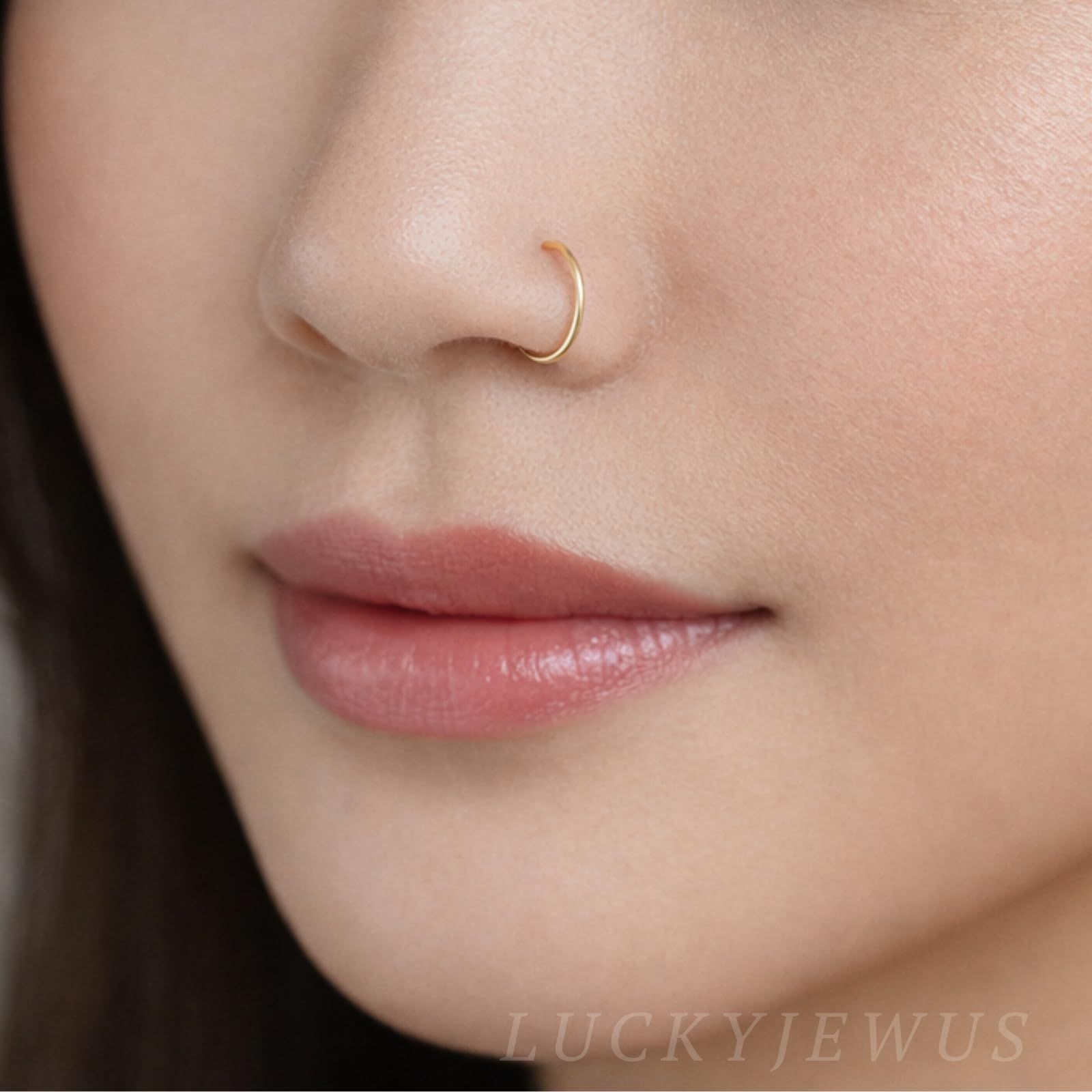 [Comfort]: Our gold nose hoop ring is lightweight and comfy, perfect nose piercing jewelry to everyday wear, you even can not feel it, no need to remove while shower, swimming or sleeping