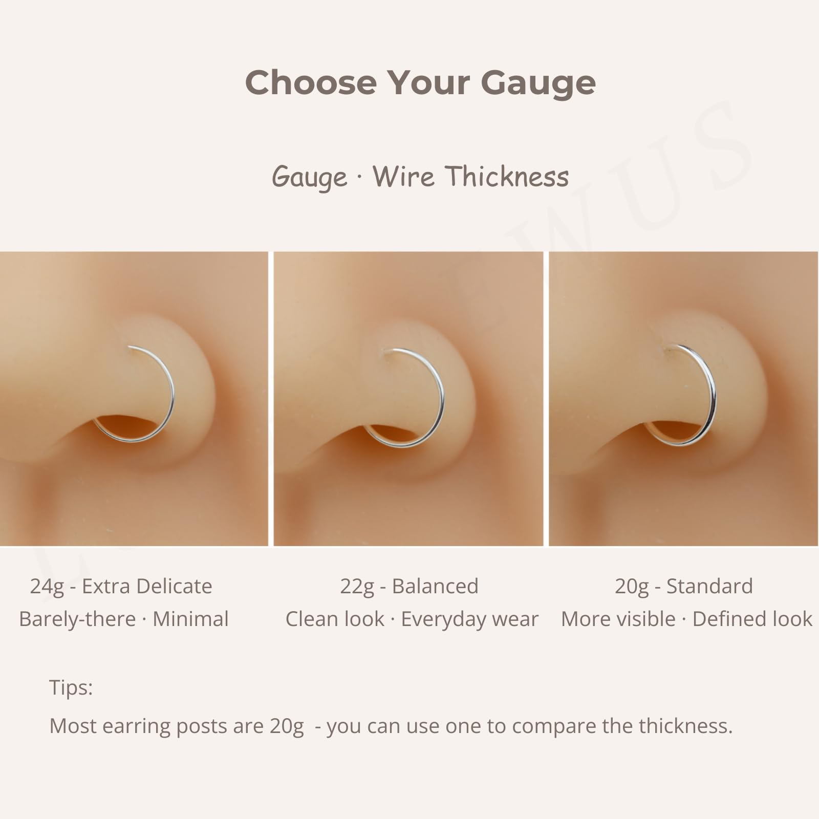 [Size and Gauge]: One nose ring hoop only, available sizes: 5mm 6mm 7mm 8mm 9mm 10mm 11mm 12mm, with options of thickness: 20, 22, or 24 gauge. Please following the listing instruction to measure and choose your size.