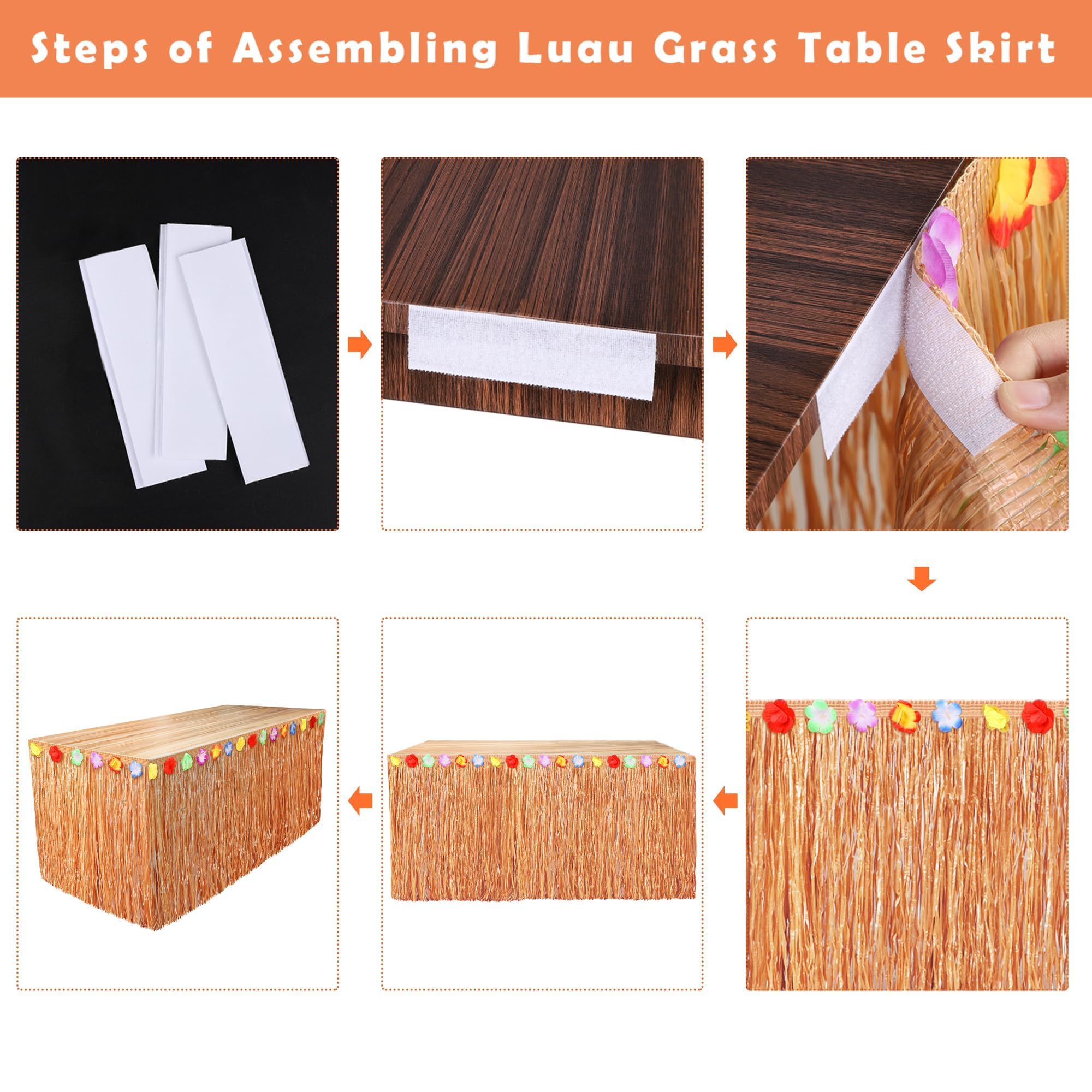 What you will receive: the package comes with 1 pack of grass table skirt in each set, and each Hawaiian themed grass table skirt natural is also paired with 5 pairs of adhesive hoop and loop tapes, convenient and practical for your holiday decorations