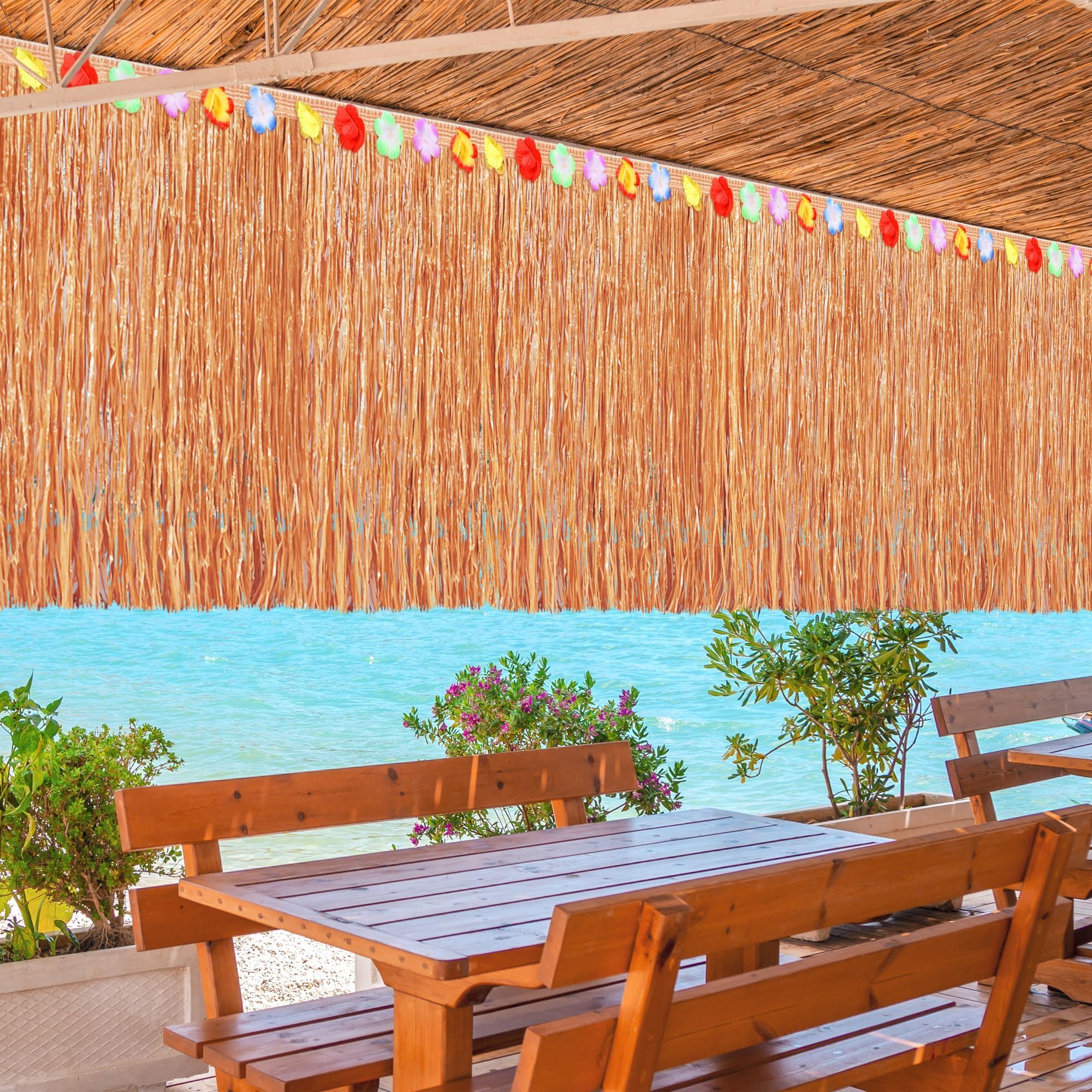 Proper size: the size of each grass table skirt for luau party is 108 x 29.5 inches / 276 x 75 cm, which can be stuck around tables of different shapes, adding more festive touch to your Hawaiian themed events
