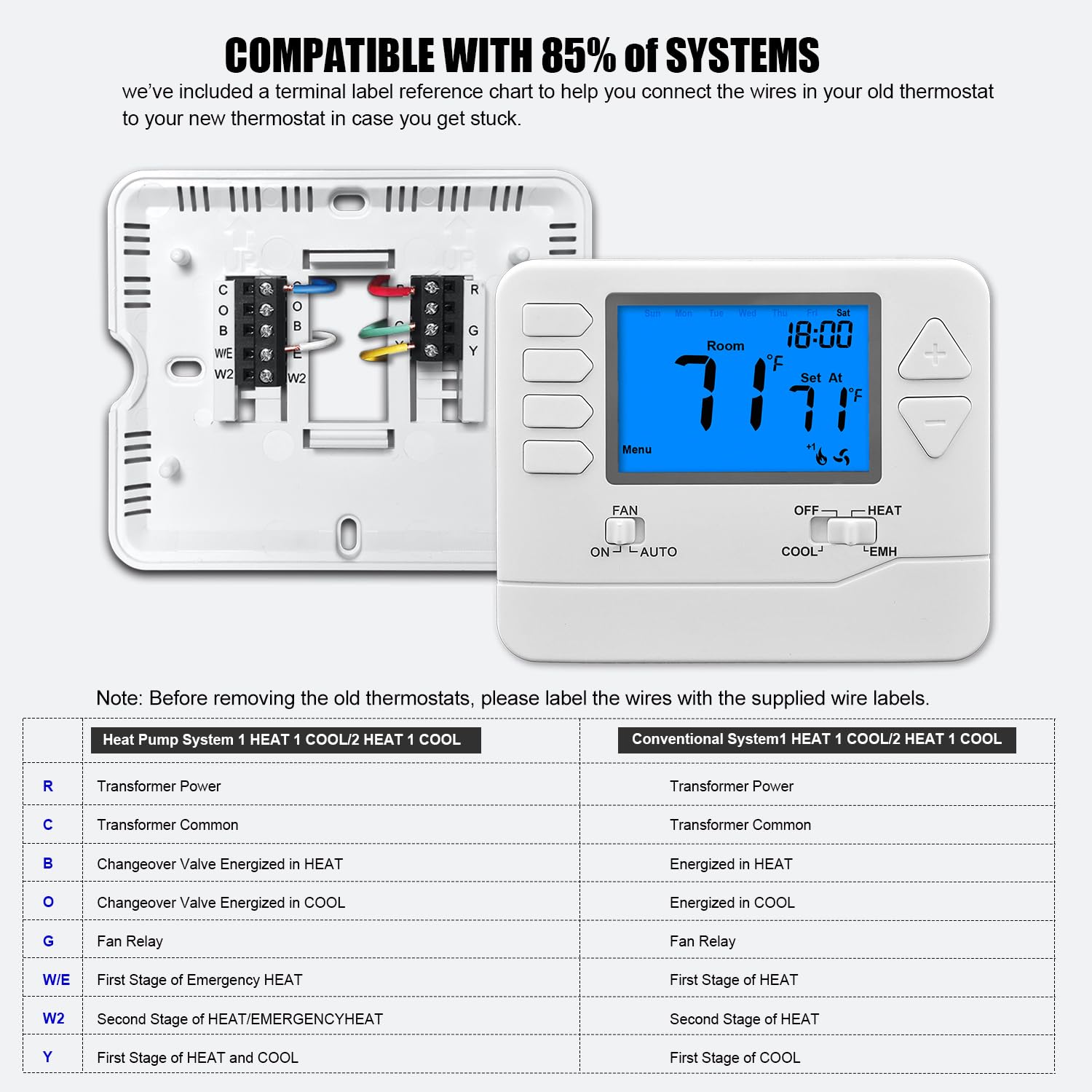 Compatible with Heat Pump systems (with aux or emergency heat) and Heat Pump (without aux) systems. Compatible with most 24V conventional single-stage systems (i.e. conventional force air, central gas, oil, or electric furnaces single-stage systems ) up to 2 heat 1 cool.