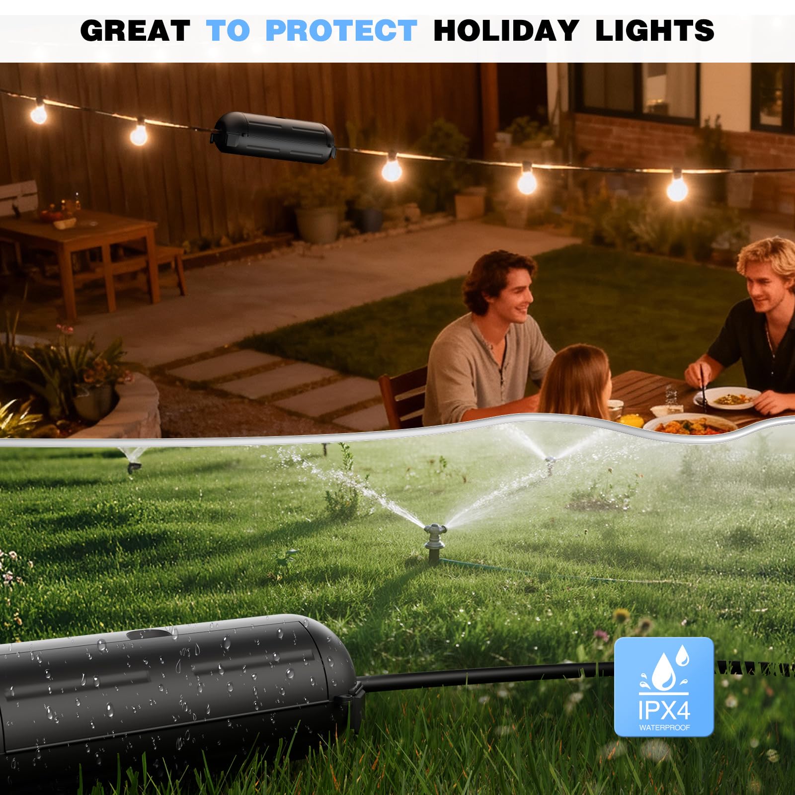 Designed to keep cord connection secure and protected. Great for keeping Christmas inflatable decor running while safeguarding its electrical safety. Compact size and light weight are great to protect outlet/plug/socket/connection hanging in the air.
