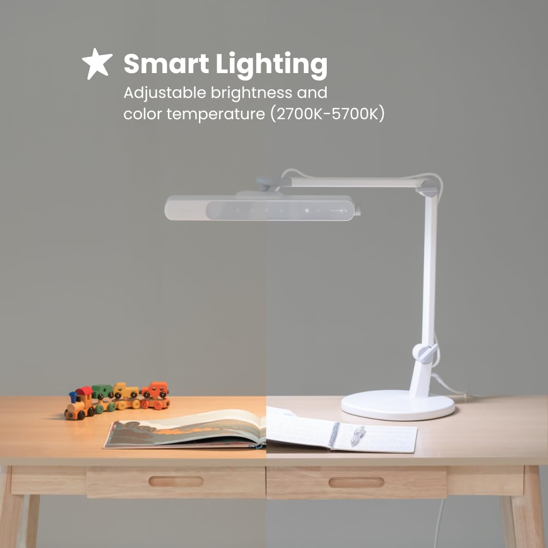CUSTOMIZABLE SETTINGS - Offers a range of adjustable features, including seven color temperature choices ranging from 2700K to 5700K, brightness adjustments, height, and angles. These customizable settings enable personalized adjustments for an optimal study environment.