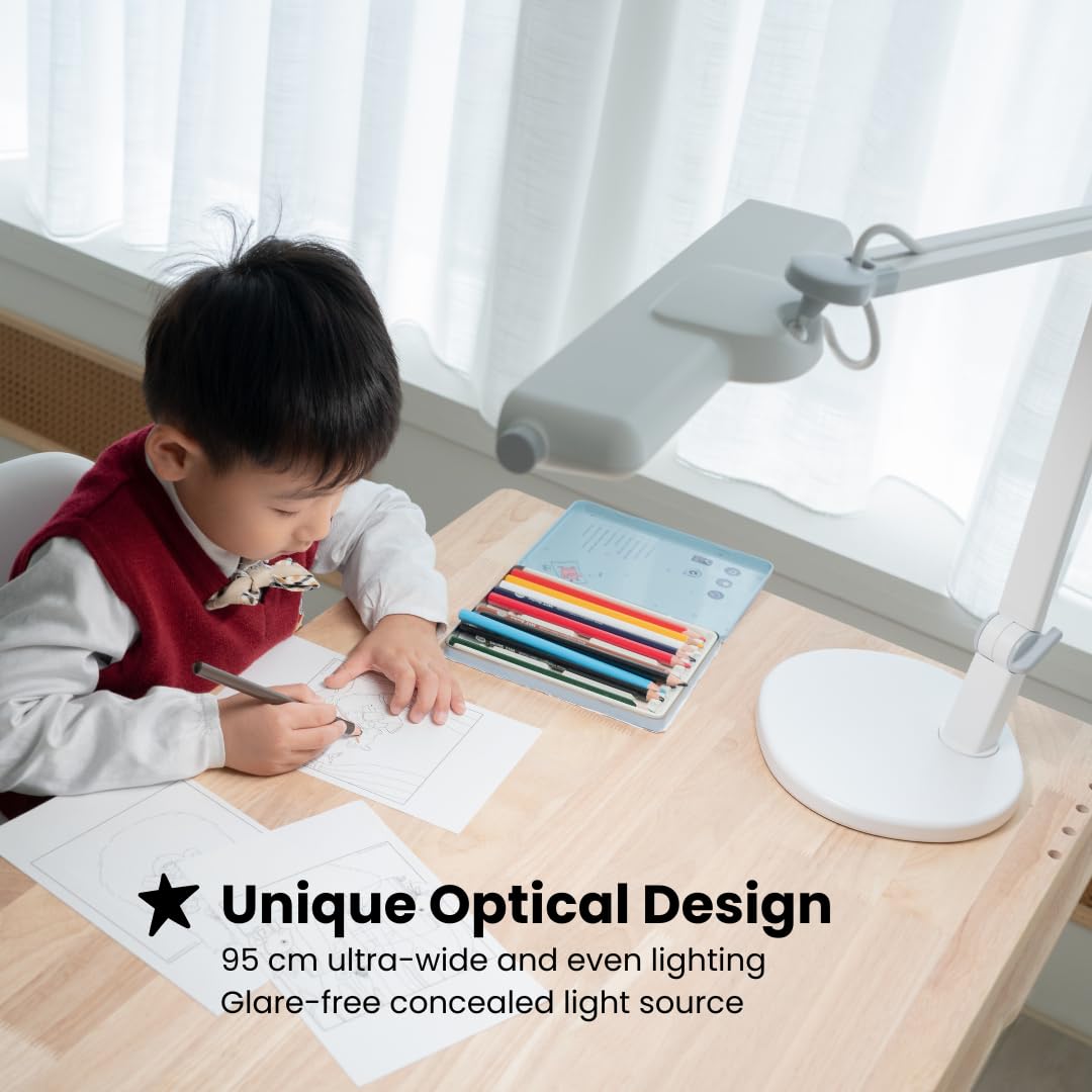 ADVANCED ILLUMINATION - Utilizing OVAL-Light optical technologies, the MindDuo 2 provides wide, even, and ample lighting, covering an area of up to 37.4 inches with a light level of 500 lux. The Glare-CUT design further ensures the absence of direct glare, thereby reducing eye strain during extended study sessions.