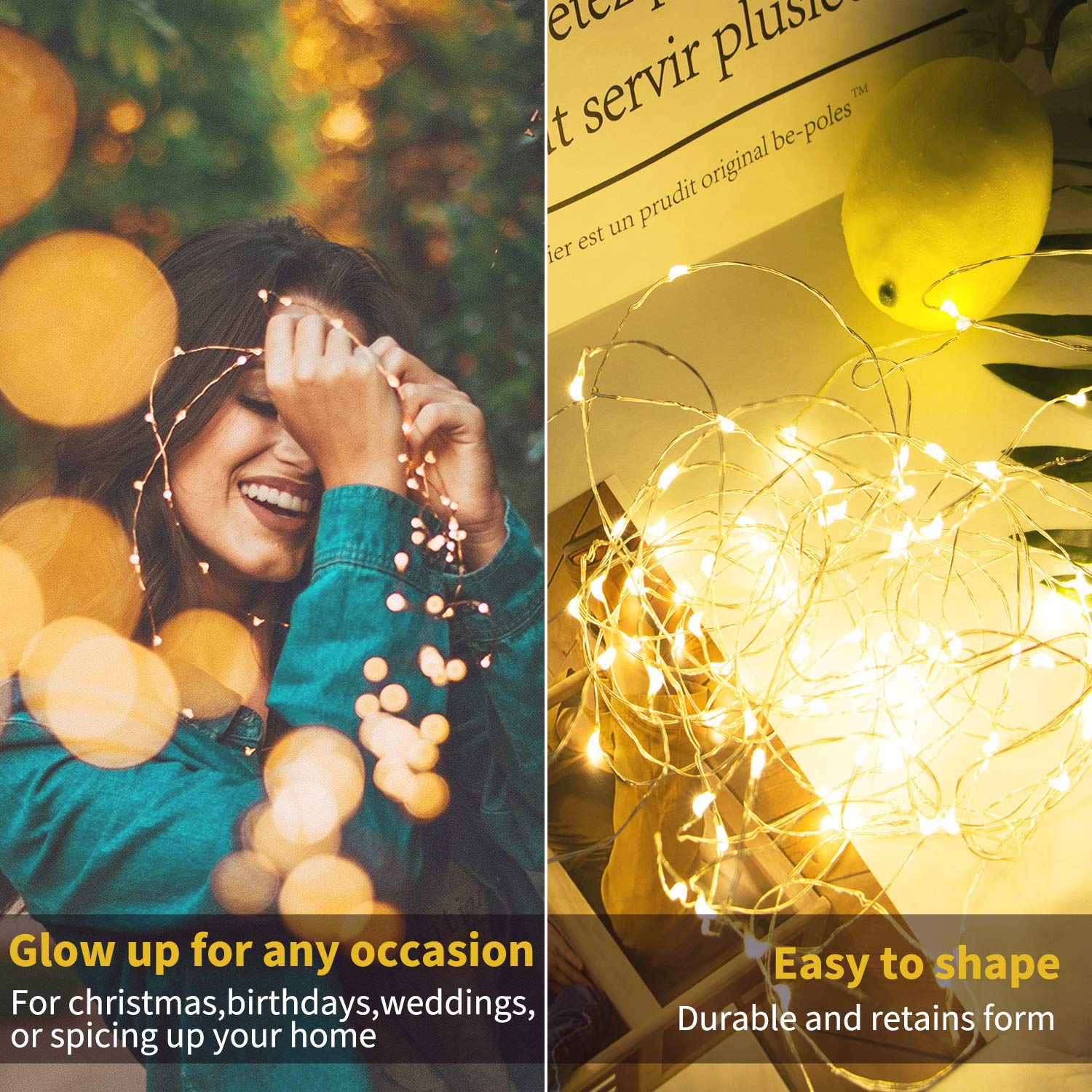 【 Wide Decorative Uses 】 Perfect fairy lights for weddings, parties, mason jars, crafts, arts, trees, branches, plants, flowers, kids’ rooms, tents, bedrooms, living rooms, nurseries, cubicles, loft beds, windows, ceilings, walls, shelves, patios, porches, balconies, corridors, fences, staircases, awnings, bulletin boards, holiday, Christmas. A lovely gift for your family or friend who wants to spruce up their surroundings
