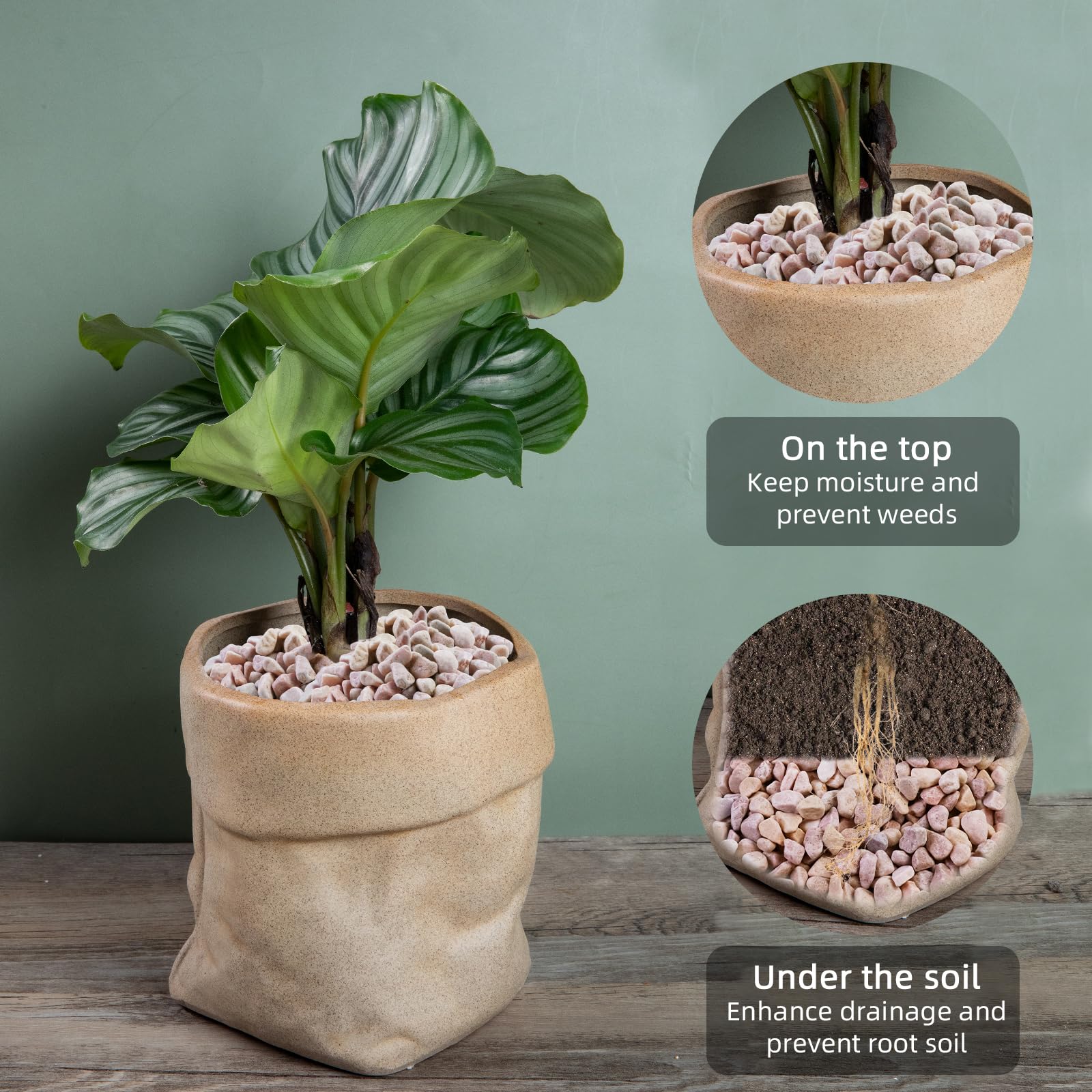 【Protect Plants】Ausluru natural pebbles can protect your plants. They can absorbs excess heat and improve drainage, help with soil moisture retention in summer and insulate plants by keeping the cold away from their roots in winter.