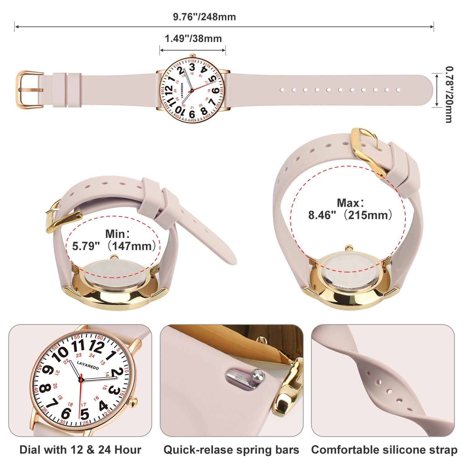 EasyRead & Military Time:Easy-to-read dial with 12/24 hour,luminescent face and MINUTE/HOUR hand for night-time visibility.The soft silicone strap is extremely comfortable to wear and the lightweight size is perfect for use at work