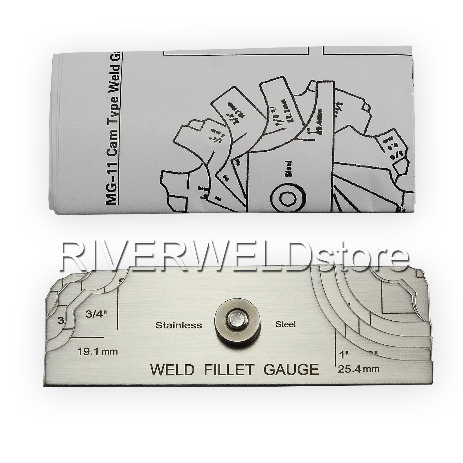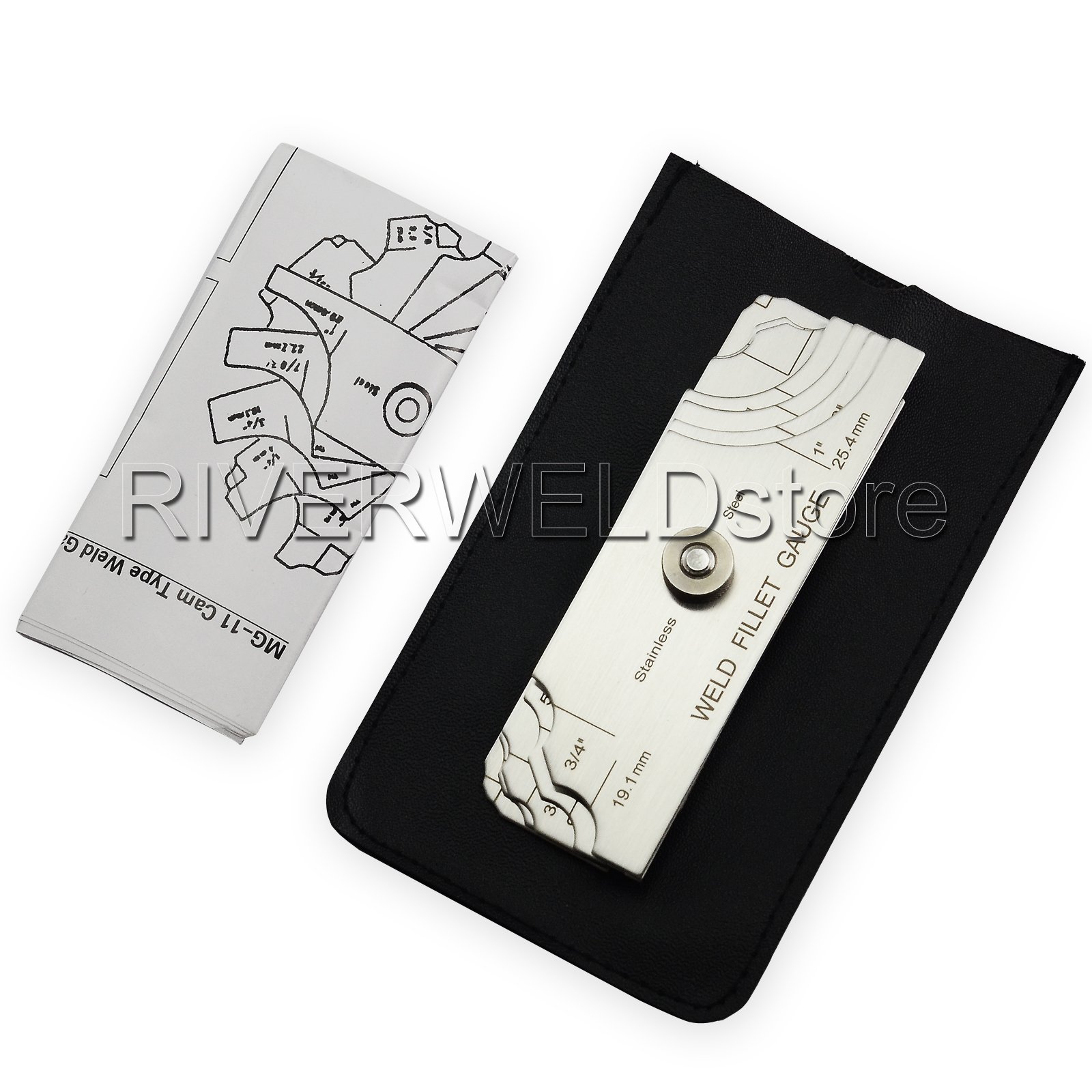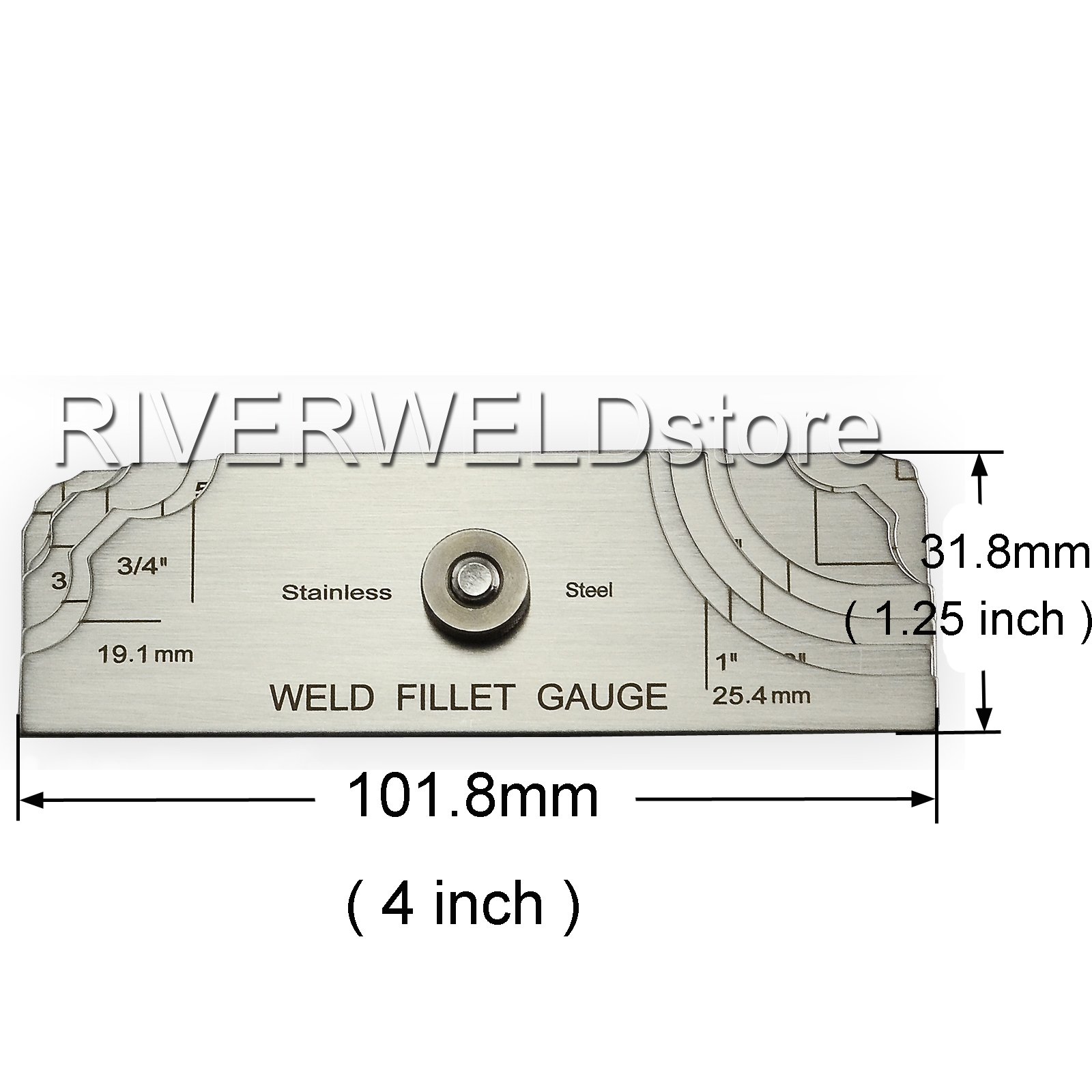 use for: checking fillet leg size checking fillet throat size Permits quick and accurate measuring of the most popular weld fillet sizes in imperial:1/8"-1" and metric:(3.2-25.4mm) All sizes and numerals are etched into the surface for clarity and easier reading. 7 piece fillet weld set & Welding Inspection Test Ulnar
