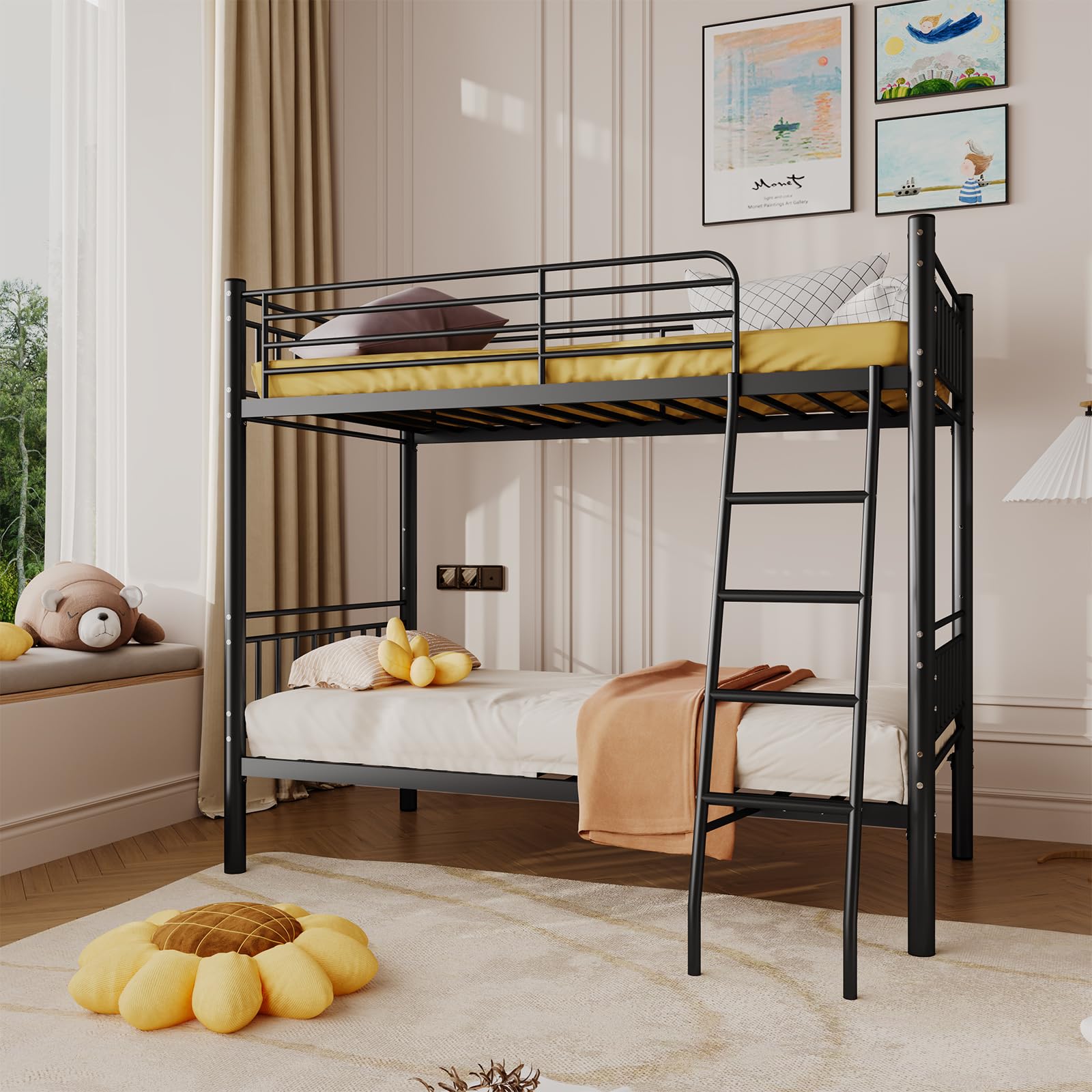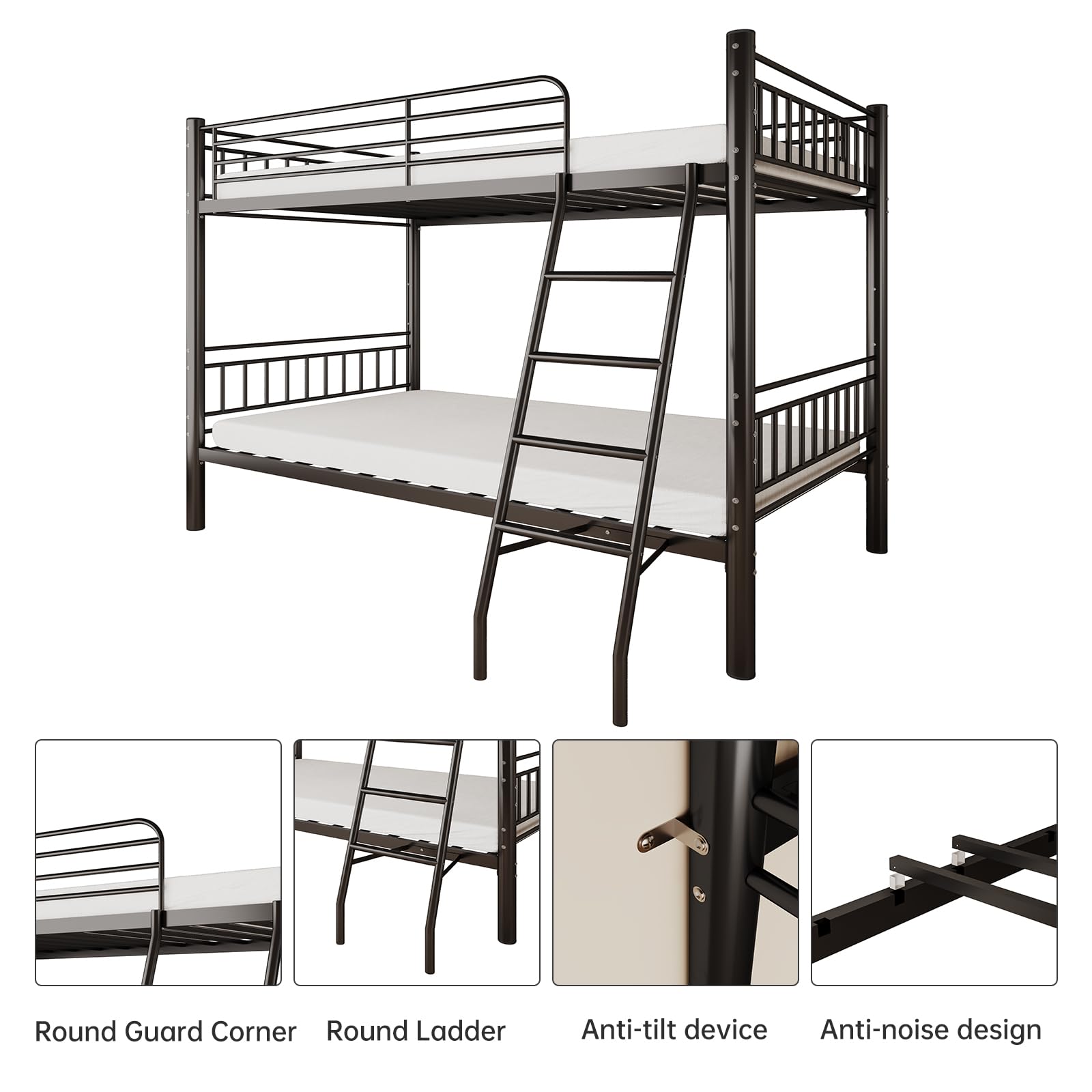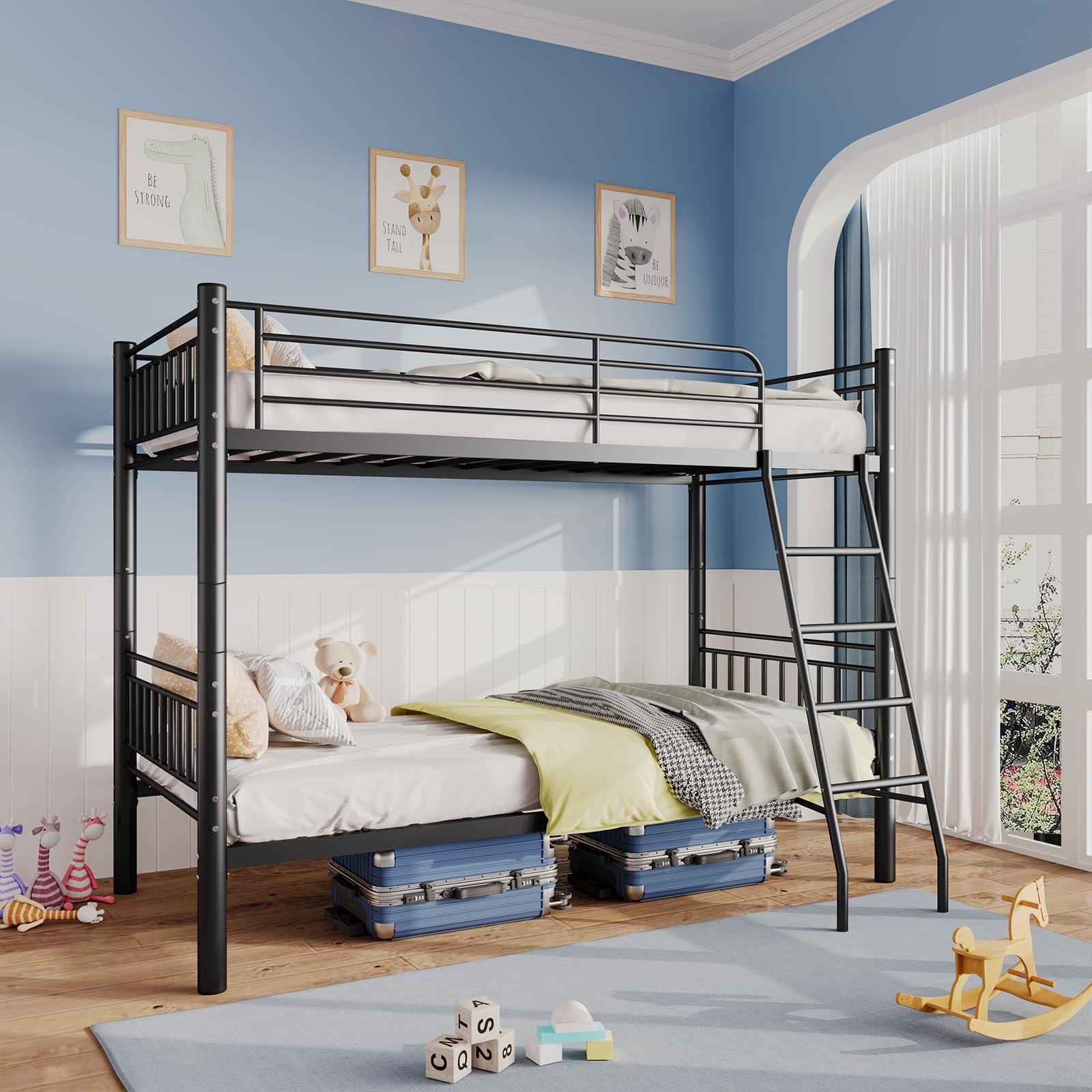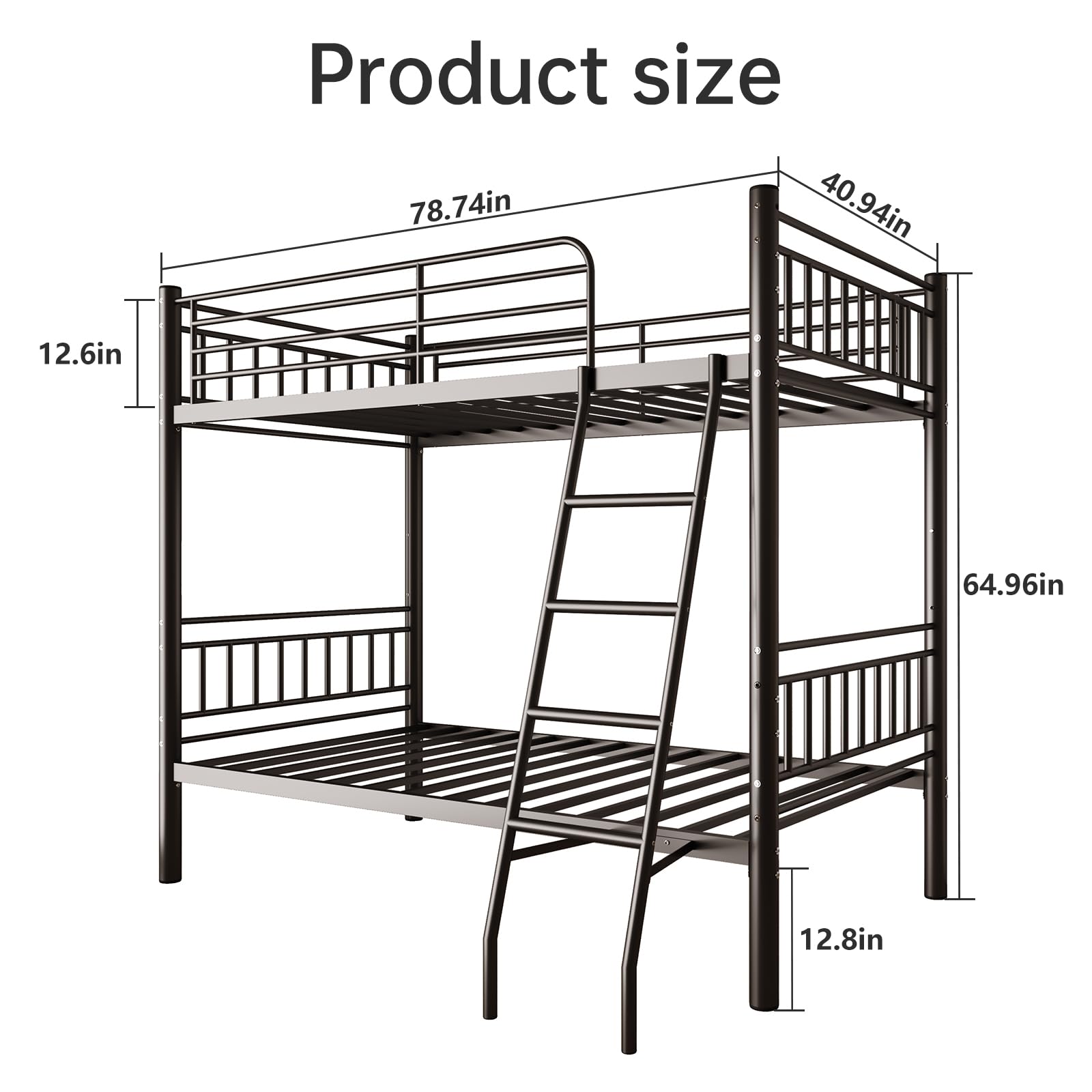 [Sturdy & Stable Bunk Bed] - Crafted from heavy-duty metal, With its 14 metal slats, this bunk bed twin over twin offers reliable support, guaranteeing a solid and sturdy structure.