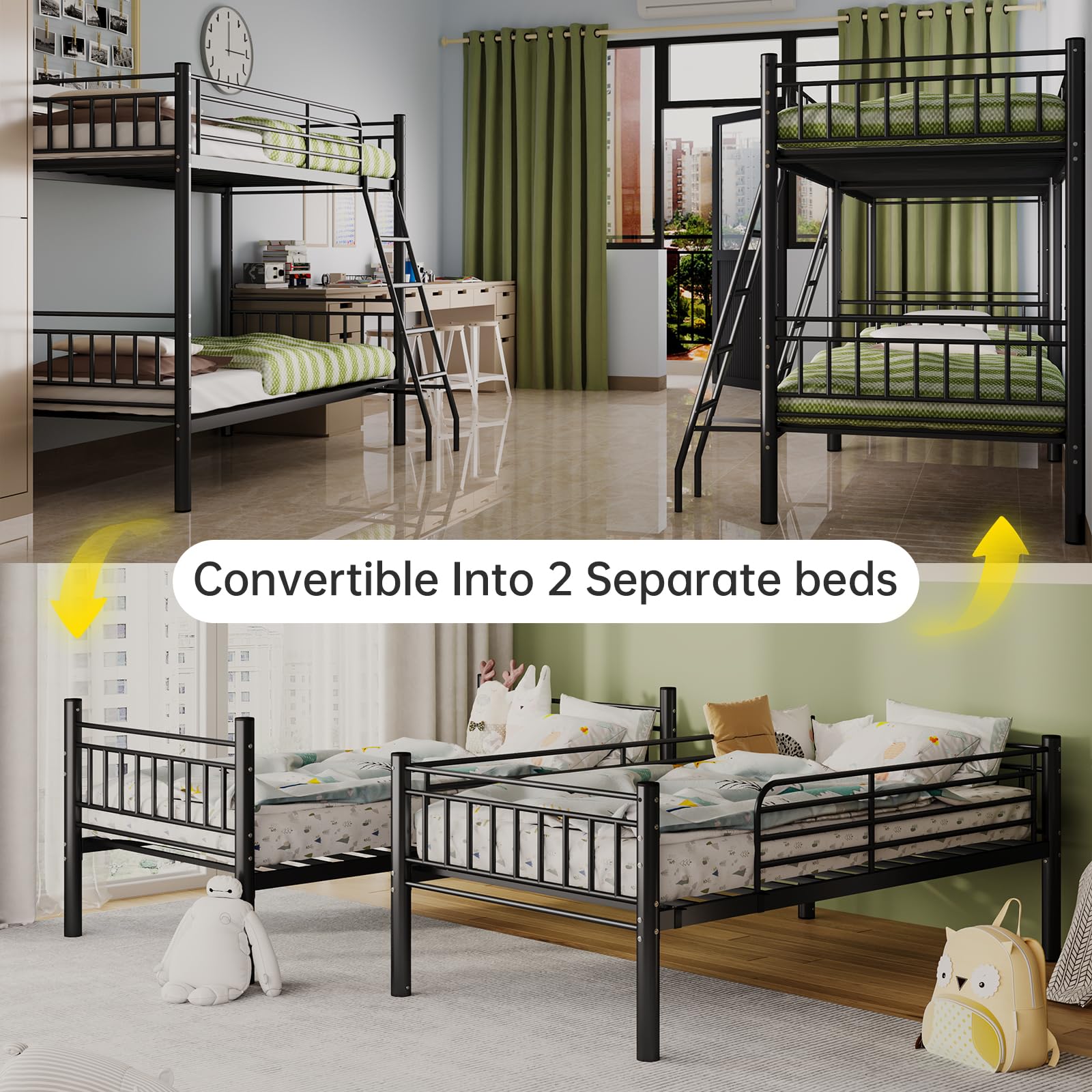 [2-in-1 Convertible Bunk Bed Twin Over Twin]: The bunk bed can be converted into two separate single beds to meet your different needs. It can be used in workers' dormitories, school dormitories, or as a children's bunk bed. The space-saving design is ideal for bedrooms