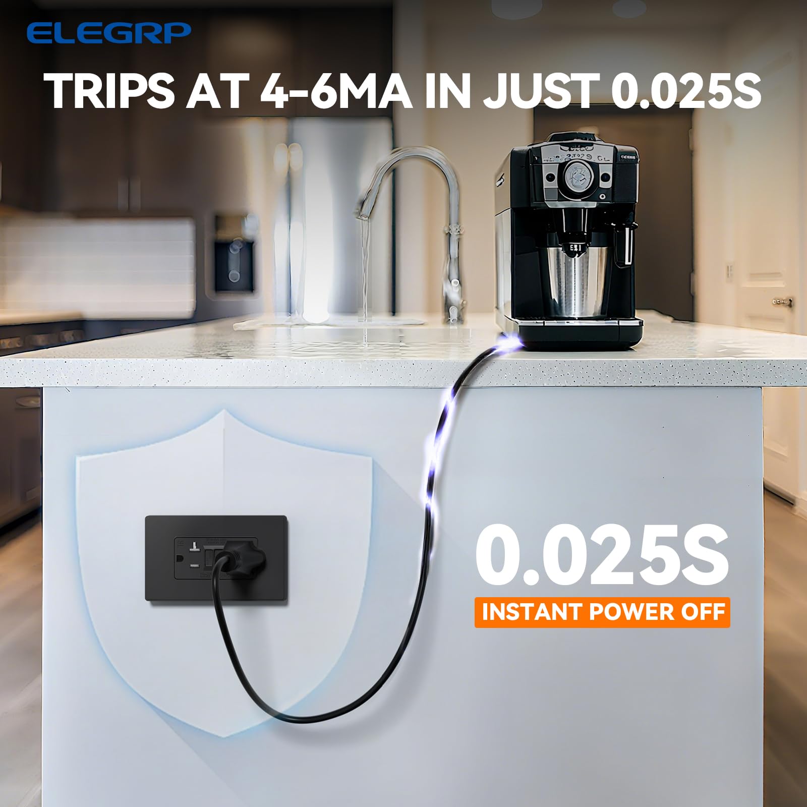 ✅【UL Certified & 3-Year Product Support】ELEGRP GFCI outlets rigorously tested to meet or exceed UL943 & UL498 standards for safety and reliability. Backed by 3 years of product support, ensuring long-term performance and customer satisfaction.