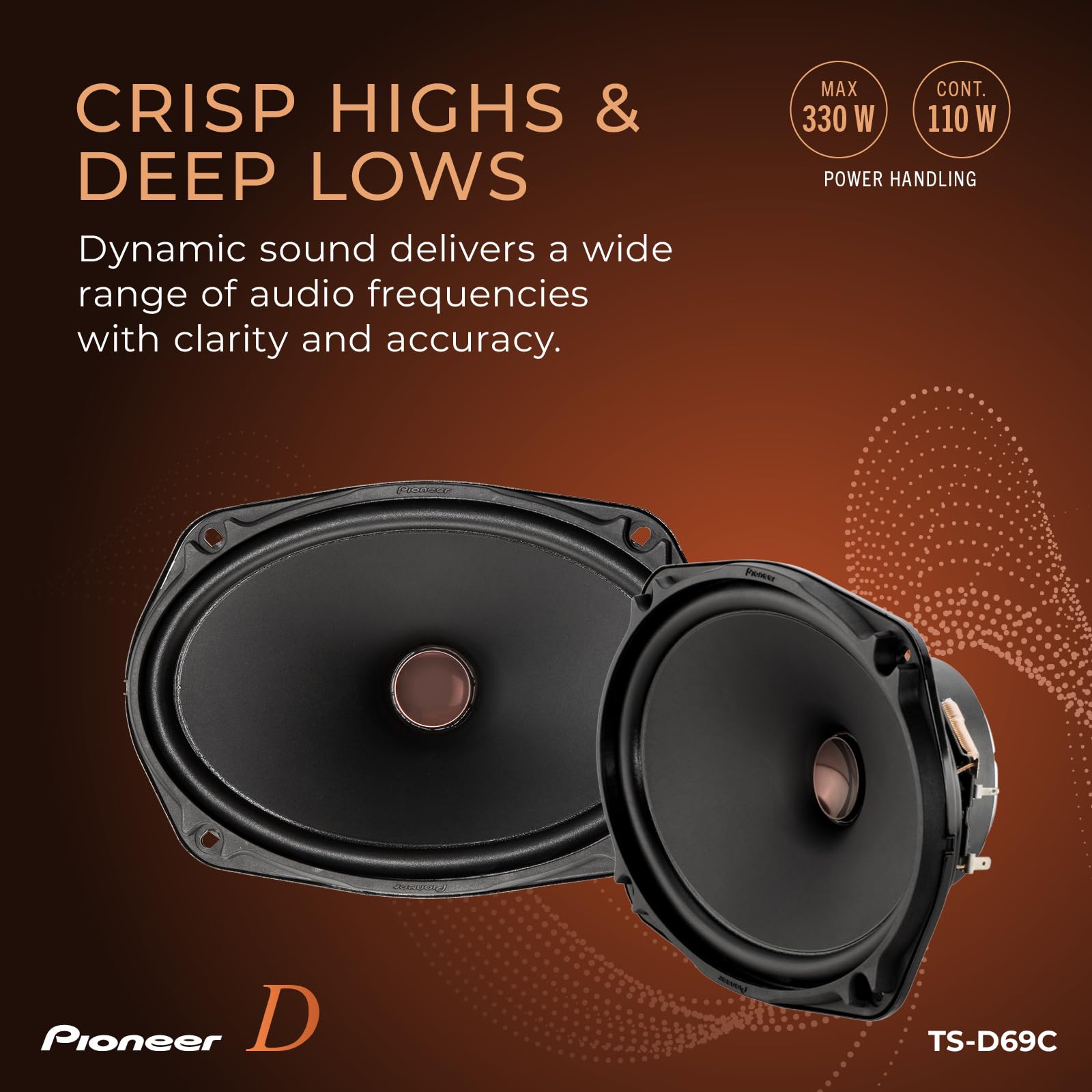Power Handling - Maximum power handling of 330 watts and a continuous power handling of 110 watts, these speakers deliver dynamic sound. Crisp highs or deep lows ensure that you can experience a wide range of frequencies with clarity and accuracy.