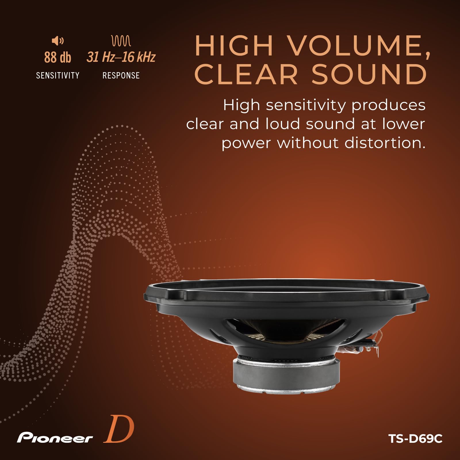 Frequency Response - Receive a rich and immersive sound reproduction across different music genres. This car audio speaker contains a broad range of audio frequencies with a response range of 31 Hz to 16 kHz.