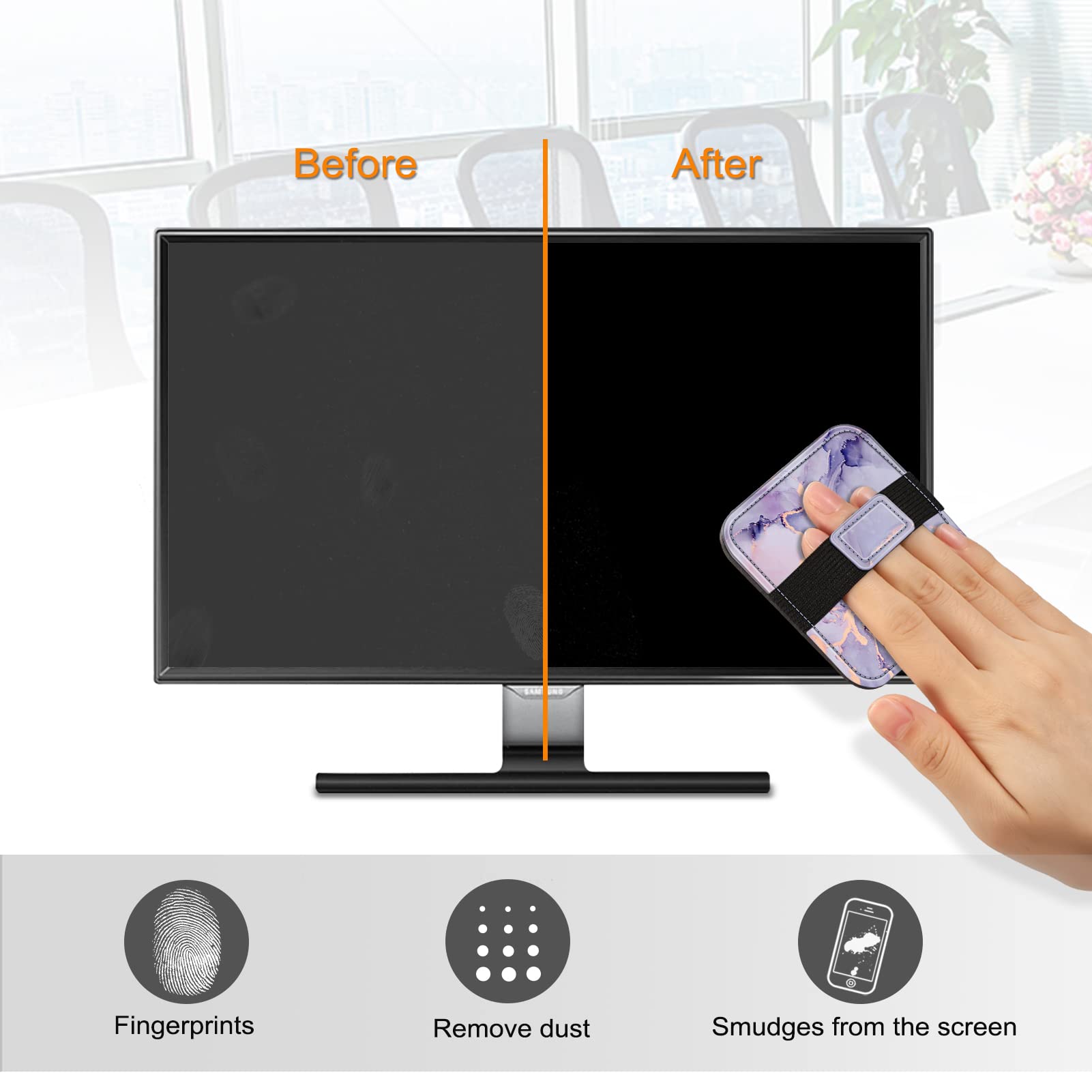 Features elastic handle strap for any hand size, easy to keep hold of the clean pad while wiping across the screen.