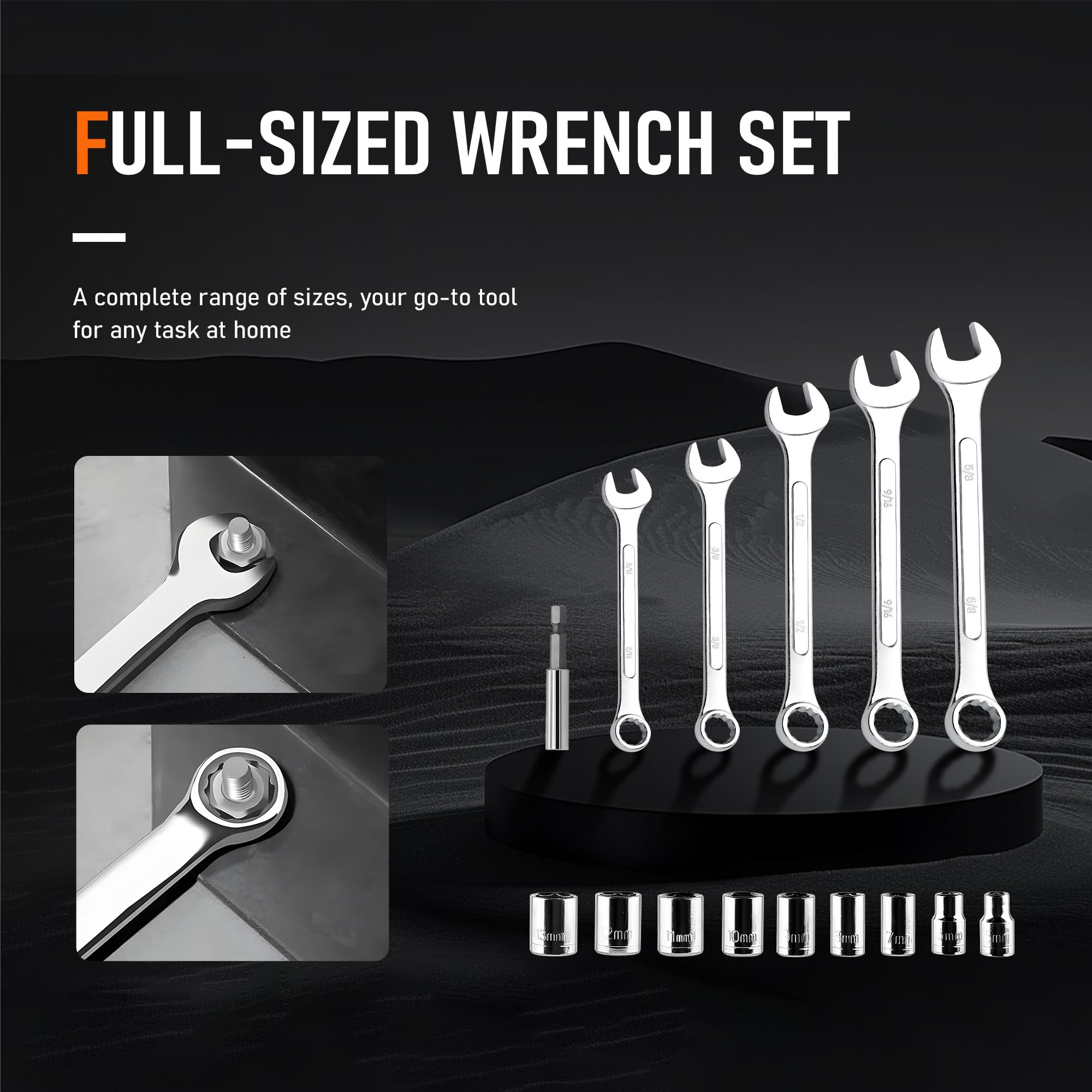 Material: Crafted from drop-forged and heat-treated advanced chrome vanadium steel; each tool ensures exceptional durability and longevity