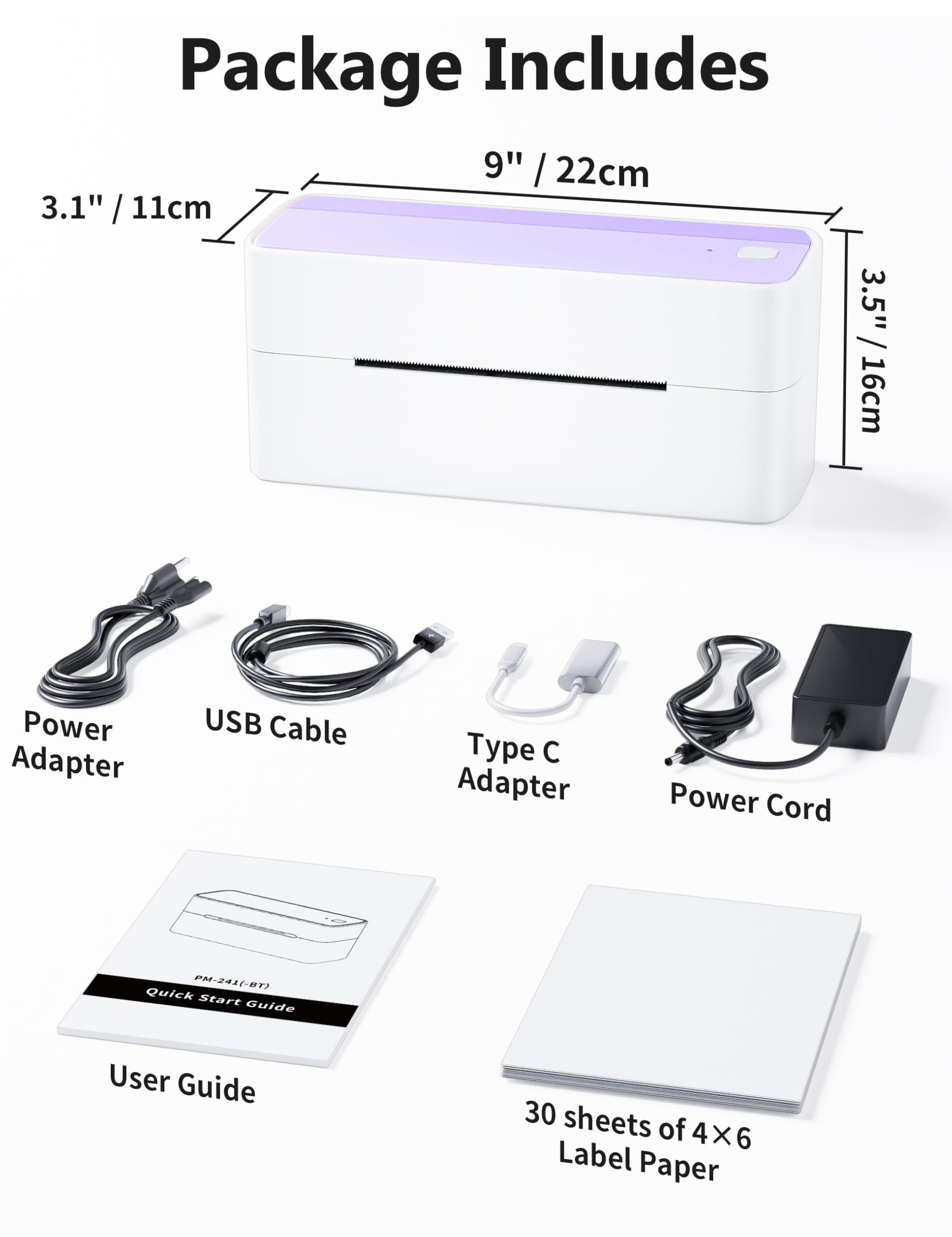[Multi-Platform Compatibility] - This shipping label printer supports label widths from 1 to 4.6 inches, making it ideal for printing labels from major platforms like eBay, Shopify, Amazon, Etsy, UPS, USPS, FedEx, and more. Easily print text, barcodes, QR codes, forms, and use pre-made templates for home or business. Note: The printer supports black-and-white printing only. For color labels, purchase compatible thermal color label paper separately.