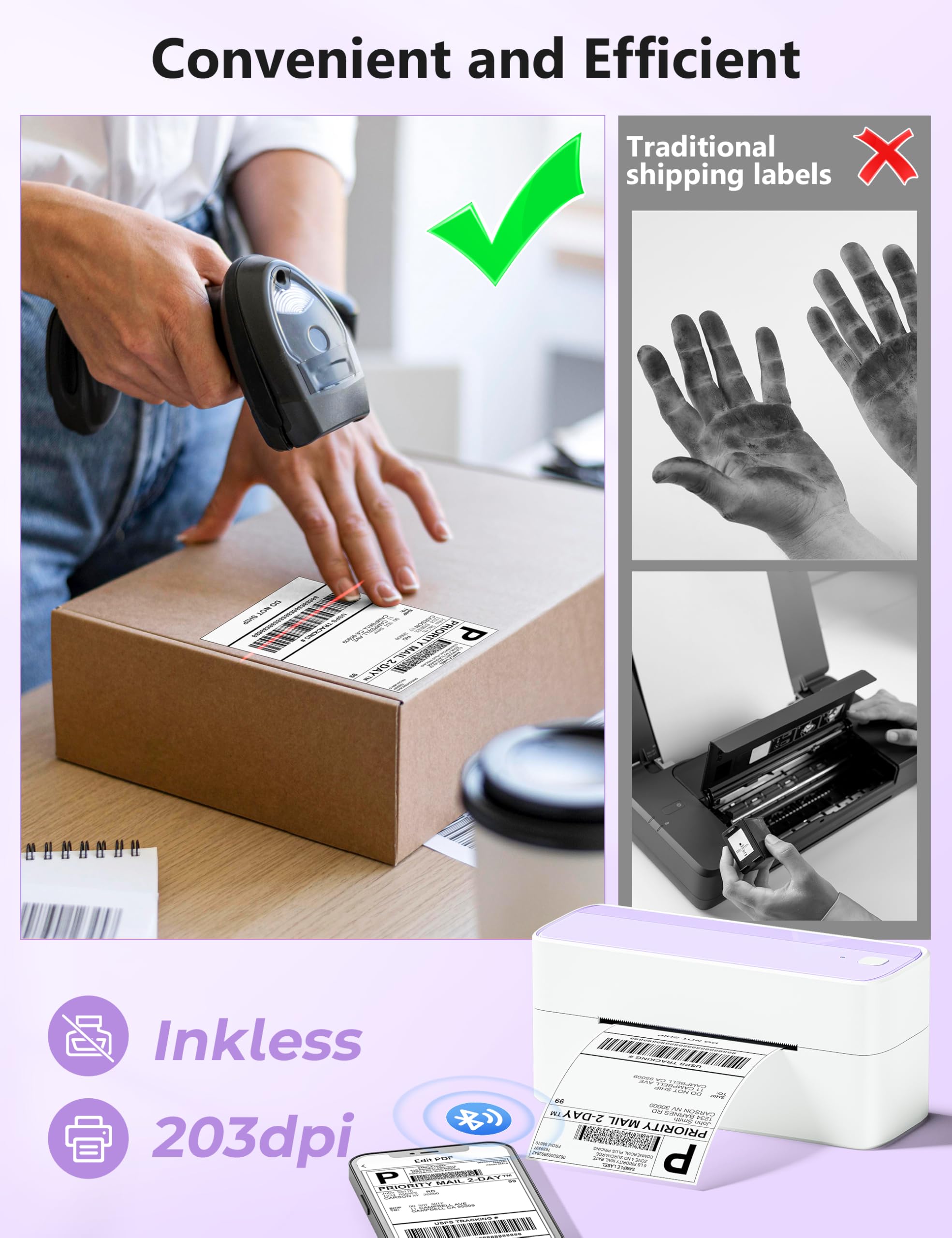 [Money and Time Saver] -Phomemo label printer utilizes advanced thermal direct technology for printing, eliminating the need for expensive toner or ink. With a printing speed of 150 mm/s, the printer can produce up to 72 sheets of 4x6 labels per minute. Additionally, the 203 DPI resolution ensures that the printing is clear and precise. With this printer, you can save precious time and money, making it an ideal choice for your labeling needs