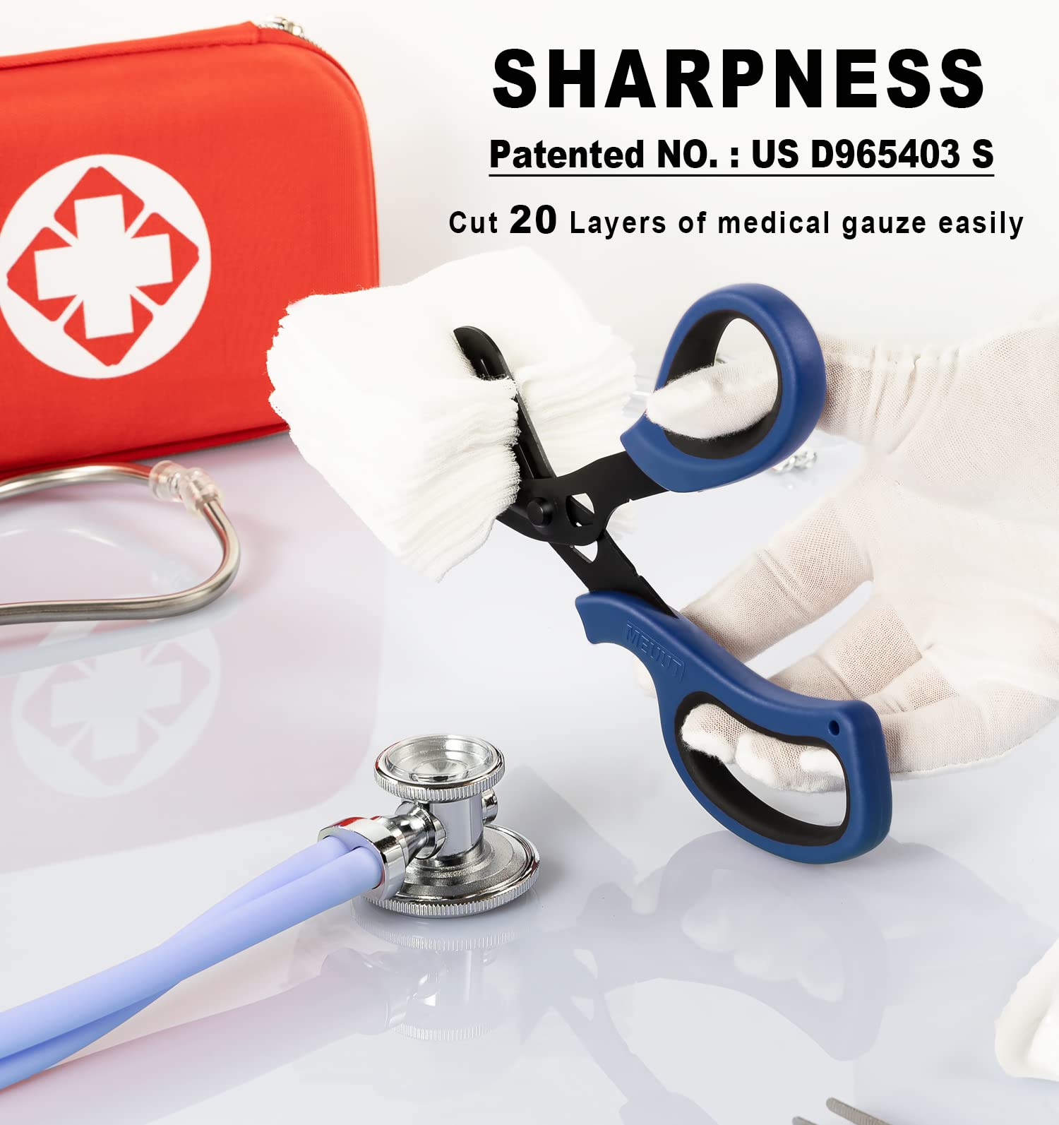 【PERFECT for FIRST AID】: 2 pack 8 inches patented medical scissors for left and right hand, Navy/black+Navy/black. Material: Stainless Steel 440, Polypropylene + TPE
