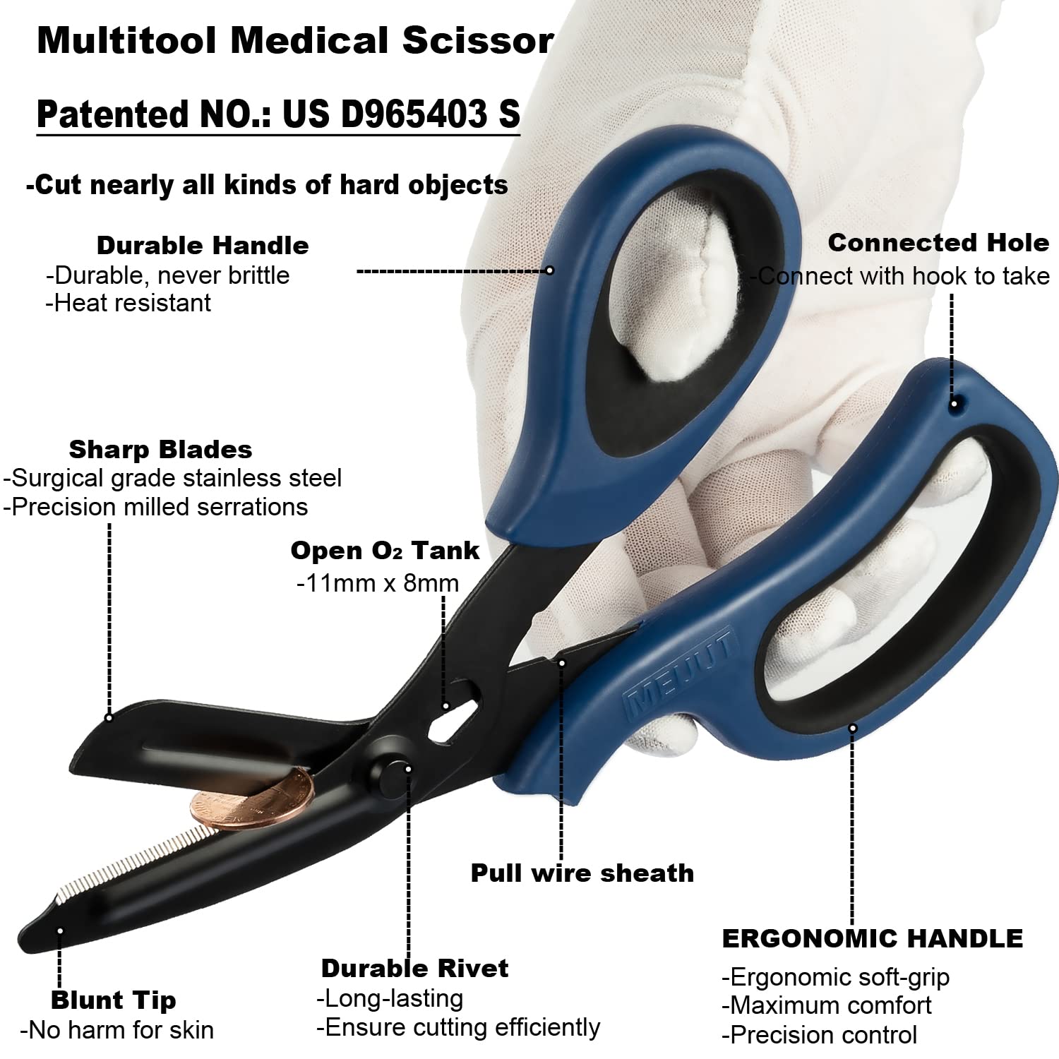 【HIGH QUILITY】: 100000 times cutting test passed, heavy duty trauma shears, made of surgical grade stainless steel 440 blades with milled serrations, fluoride-coated non-stick surface with lightweight and soft grip handle.
