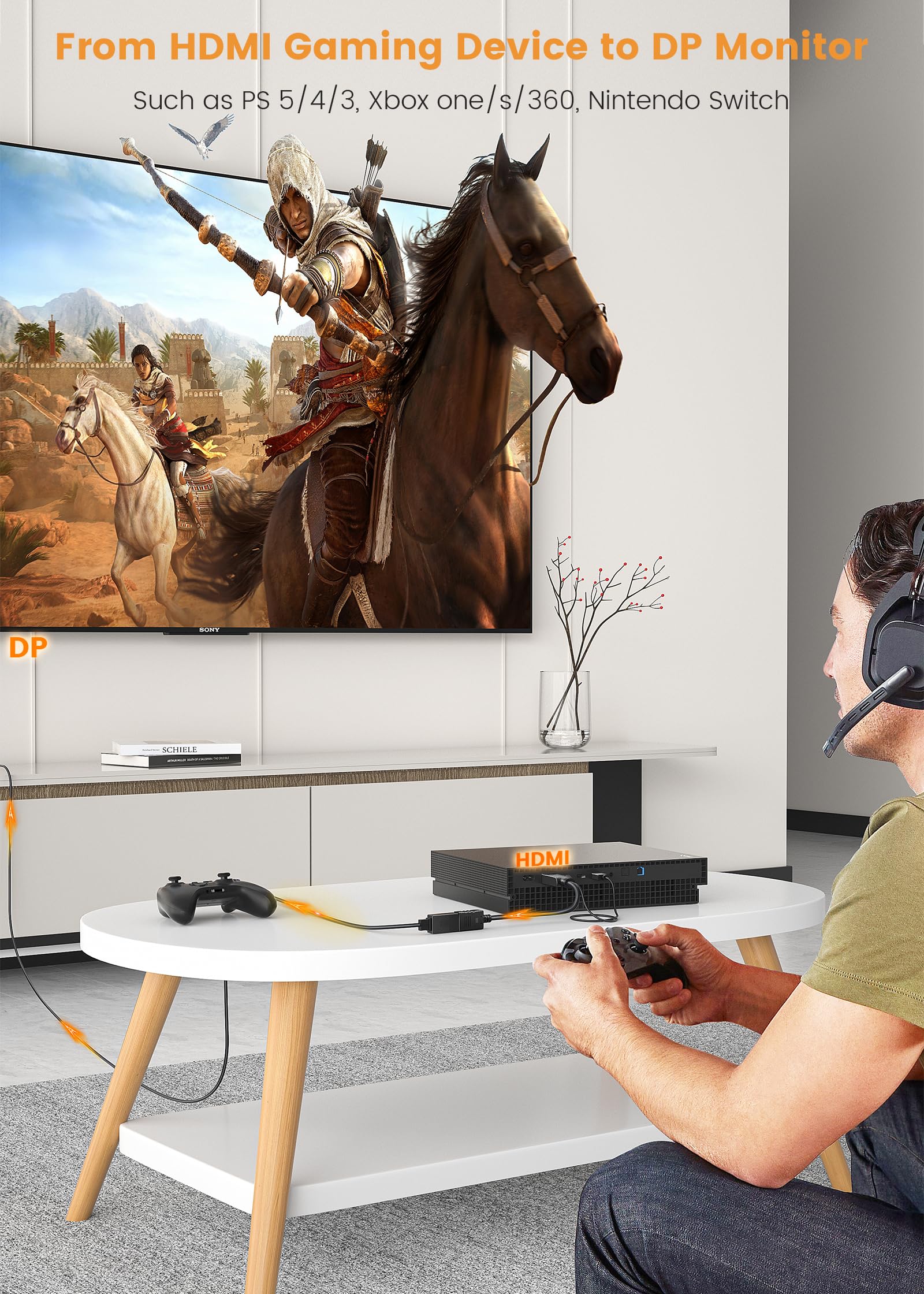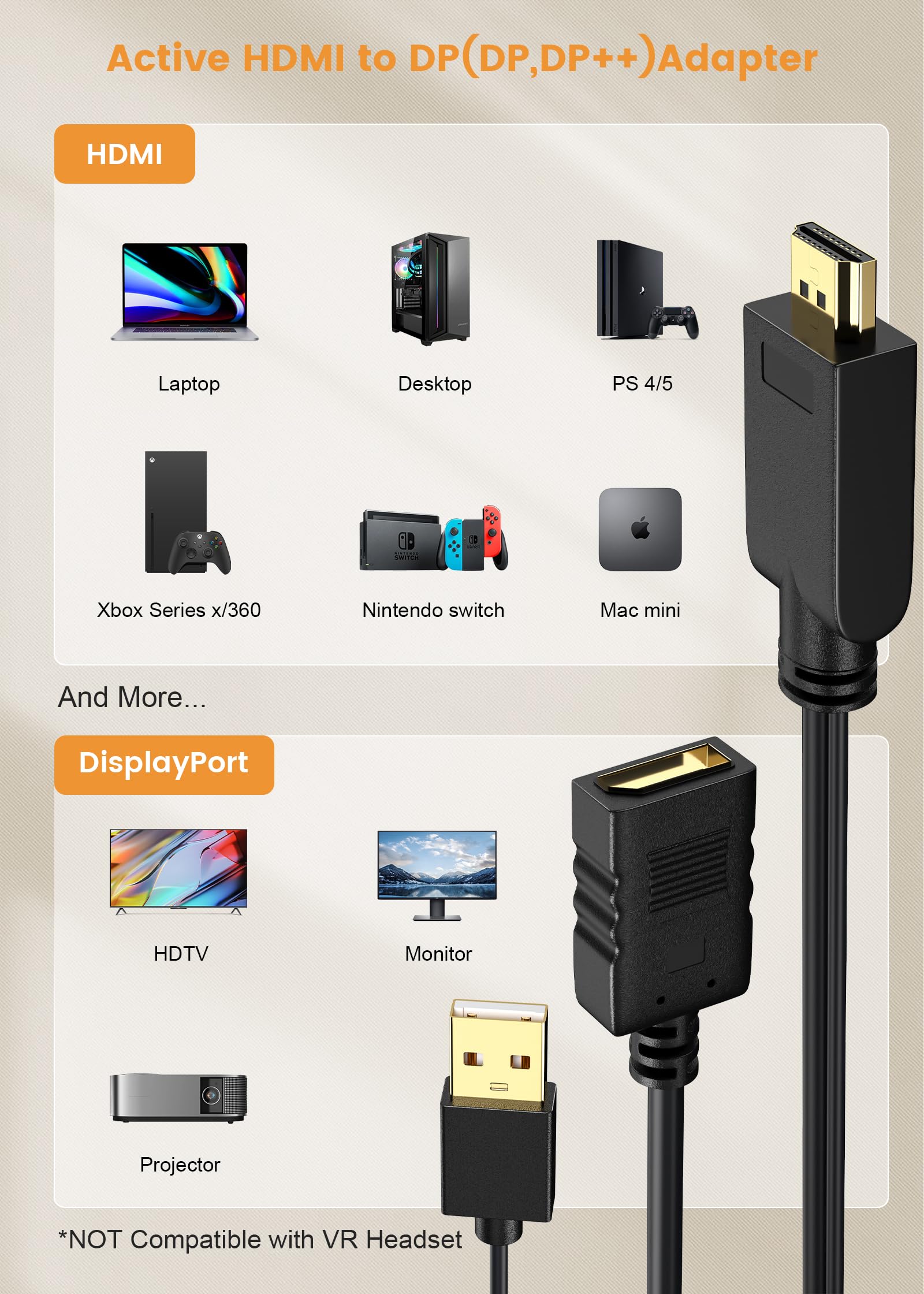【Wide Compatibility】Active HDMI to DisplayPort converter with USB power, ensure the universal compatibility. Especially for the low voltage devices, USB power provide 5v power, ensure the signal transmission stability. Before connect the adapter, please connect the USB with AC adapter or USB port on source devices