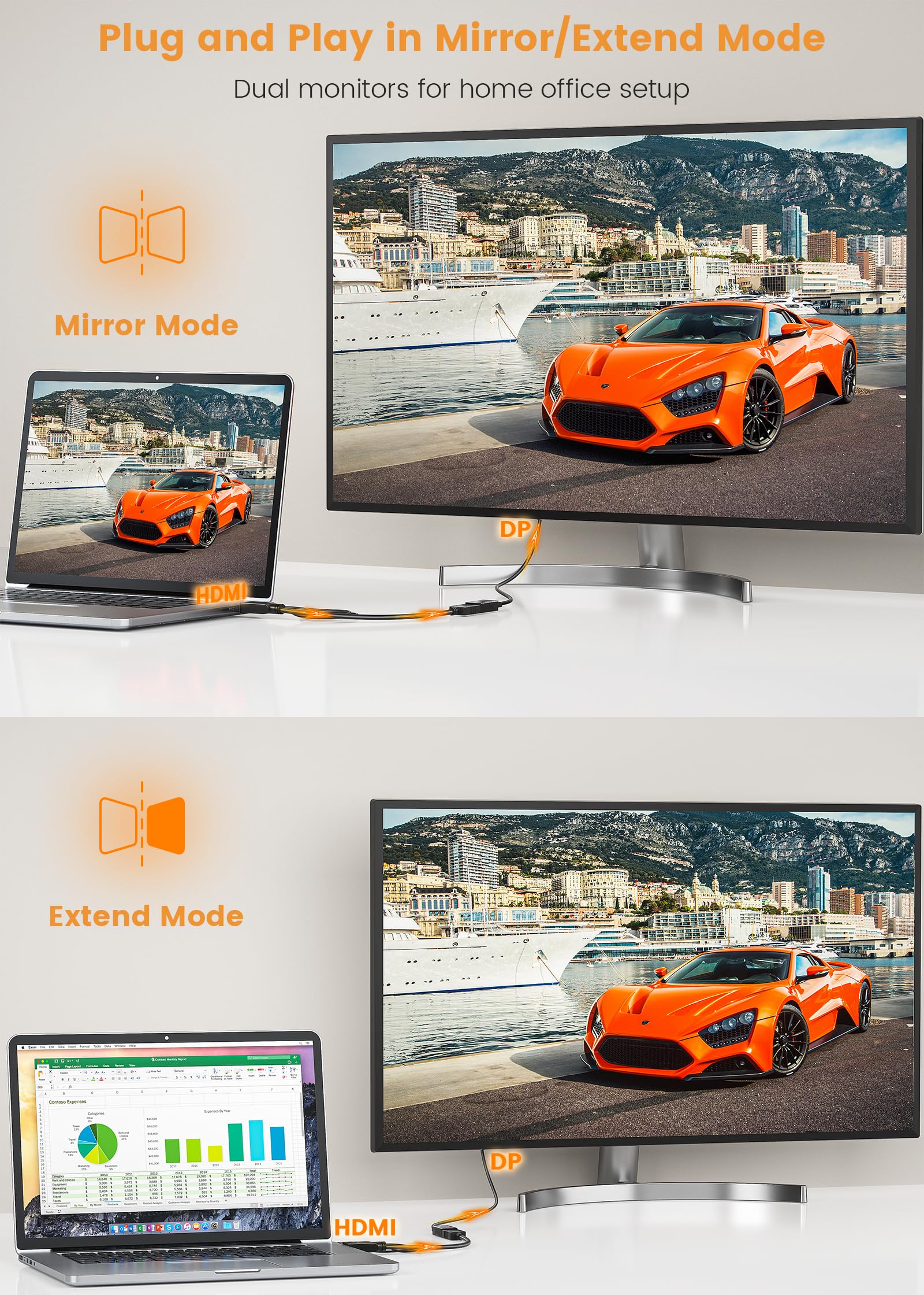 【Plug & Play】Plug and play, no driver and software required. Plug in HDMI out on source device, and DP input on display device; select corresponding DP input on display. Note: Uni-directional Adapter. It's not a bi-directional adapter, only support signal transfer from HDMI to DisplayPort input monitor, not for DisplayPort to HDMI input monitor