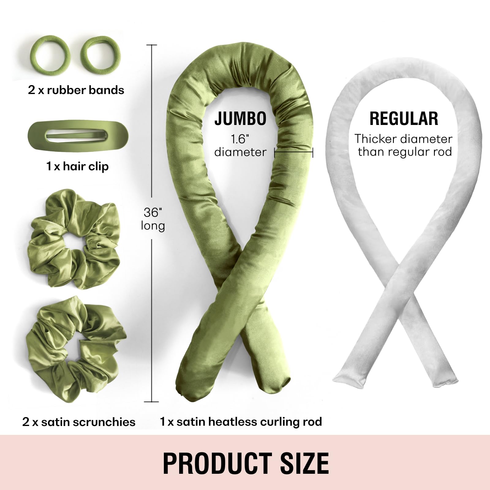COMFORTABLE: The set includes a jumbo curling rod and two satin scrunchies. The satin material delivers exceptional smoothness. Gentle yet supportive padding creates flawless curls while ensuring comfortable overnight wear.