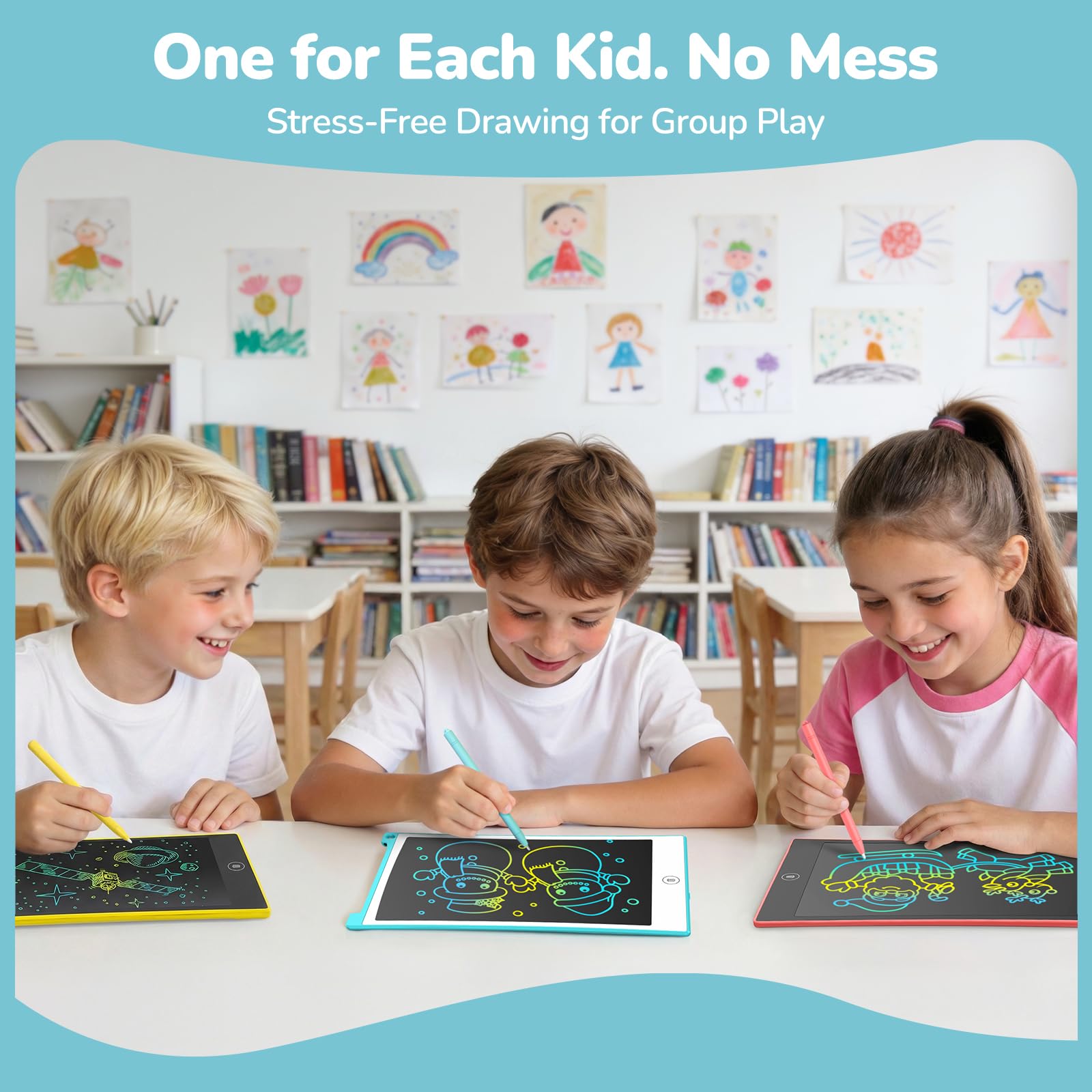 HIGH VALUE COMBO SET: Includes multiple writing tablets in one set. Featuring highly sensitive pressure-sensitive technology and a smooth, flexible LCD color screen, each tablet delivers brighter, clearer lines and creates colorful strokes of varying thickness based on pressure from stylus, fingernails, or any hard object. Great for multi-child families, traveling, classroom use, or as a gift.