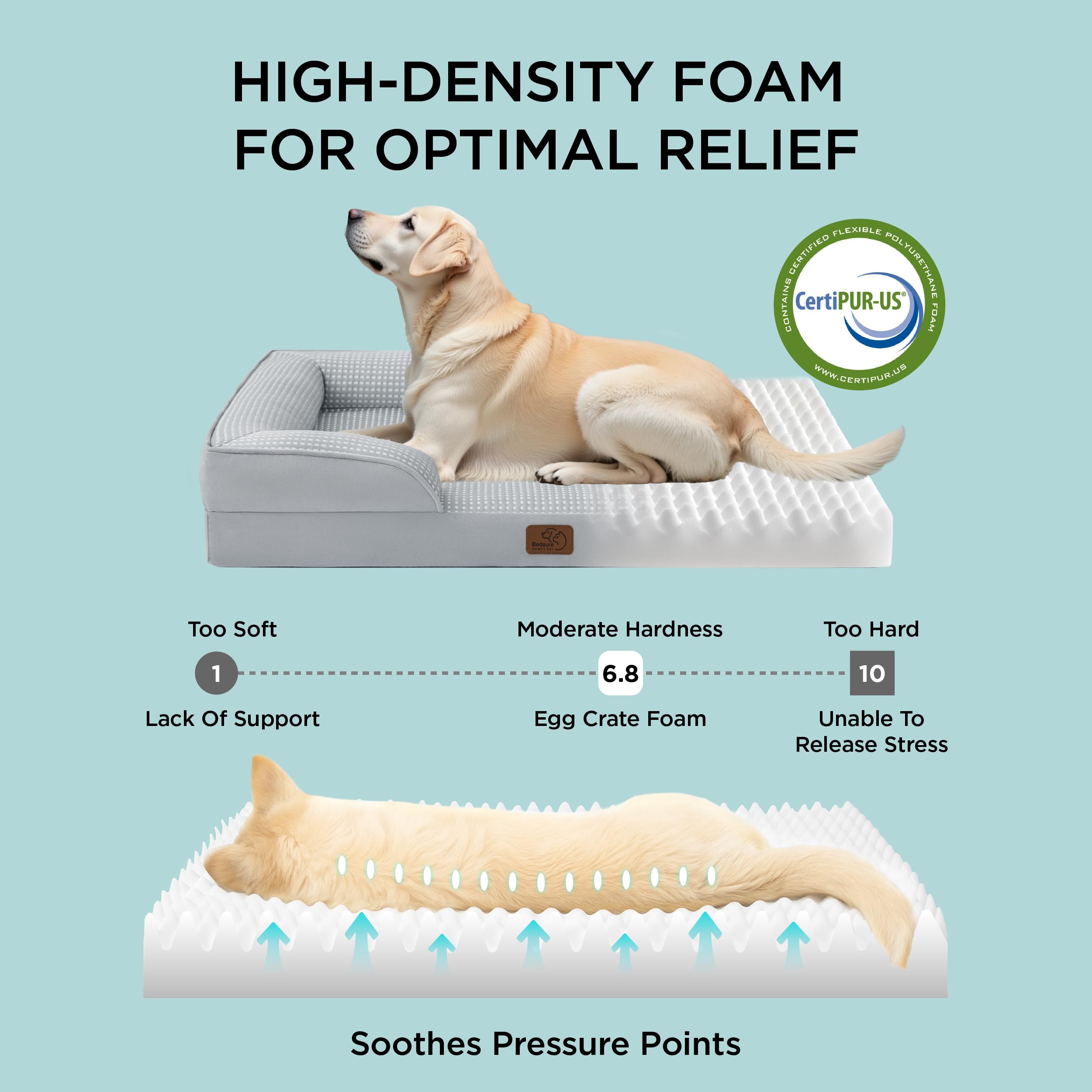 Orthopedic Support: Our orthopedic dog sofa is designed to give your pet unparalleled support for a deep, dreamy sleep. High-density egg-crate foam helps distribute weight evenly and provides the perfect amount of pressure relief and joint support.