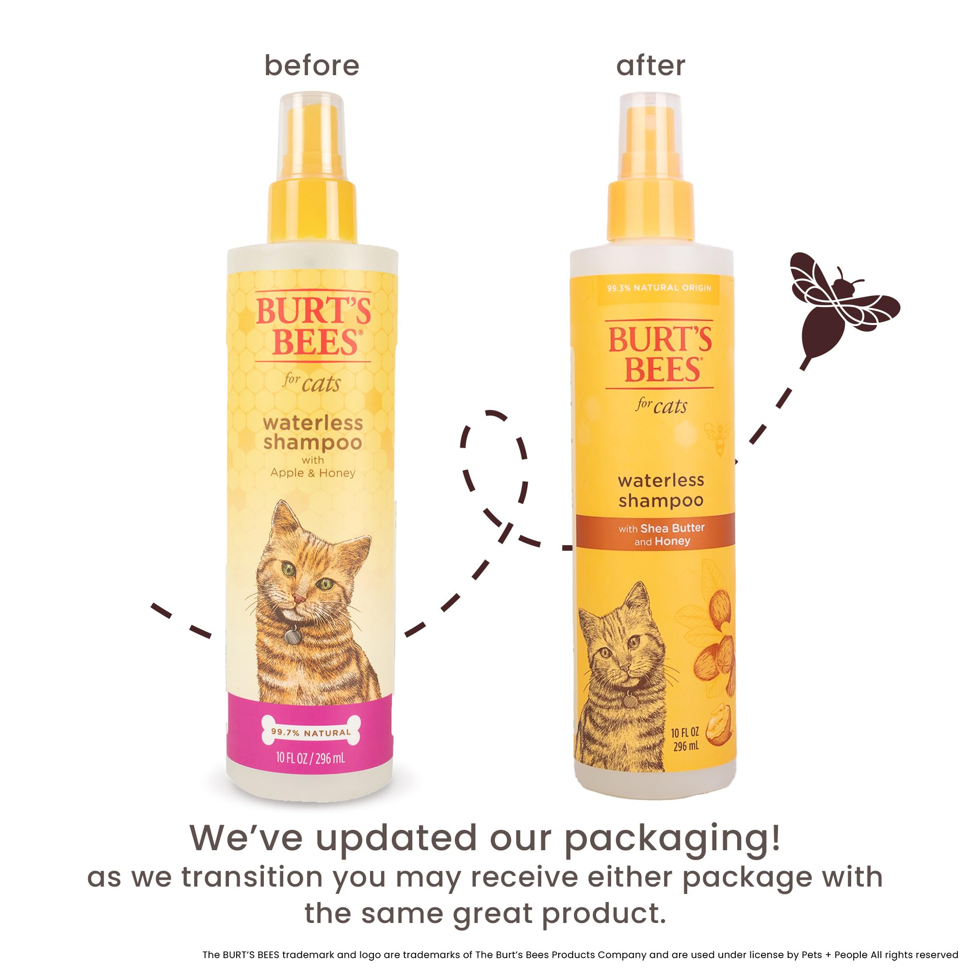 Burt’s Bees for Pets Waterless Cat Shampoo Spray is a no-rinse way to refresh your cat’s coat when a full bath is not an option. The fine mist helps lift light dirt and everyday odors so indoor cats can look and feel clean between grooming sessions at home. This gentle cat grooming spray is made with naturally derived ingredients, including shea butter and honey, to help cleanse and moisturize skin and coat. It is pH balanced for cats and kittens and fits routine coat care for a wide range of ages and coats. Formulated without chemical detergents, parabens, phthalates, or sulfates, this waterless cat shampoo supports simple, at-home pet cleaning with less stress. Keep it with your grooming supplies for quick touch-ups after play, travel, or small messes.