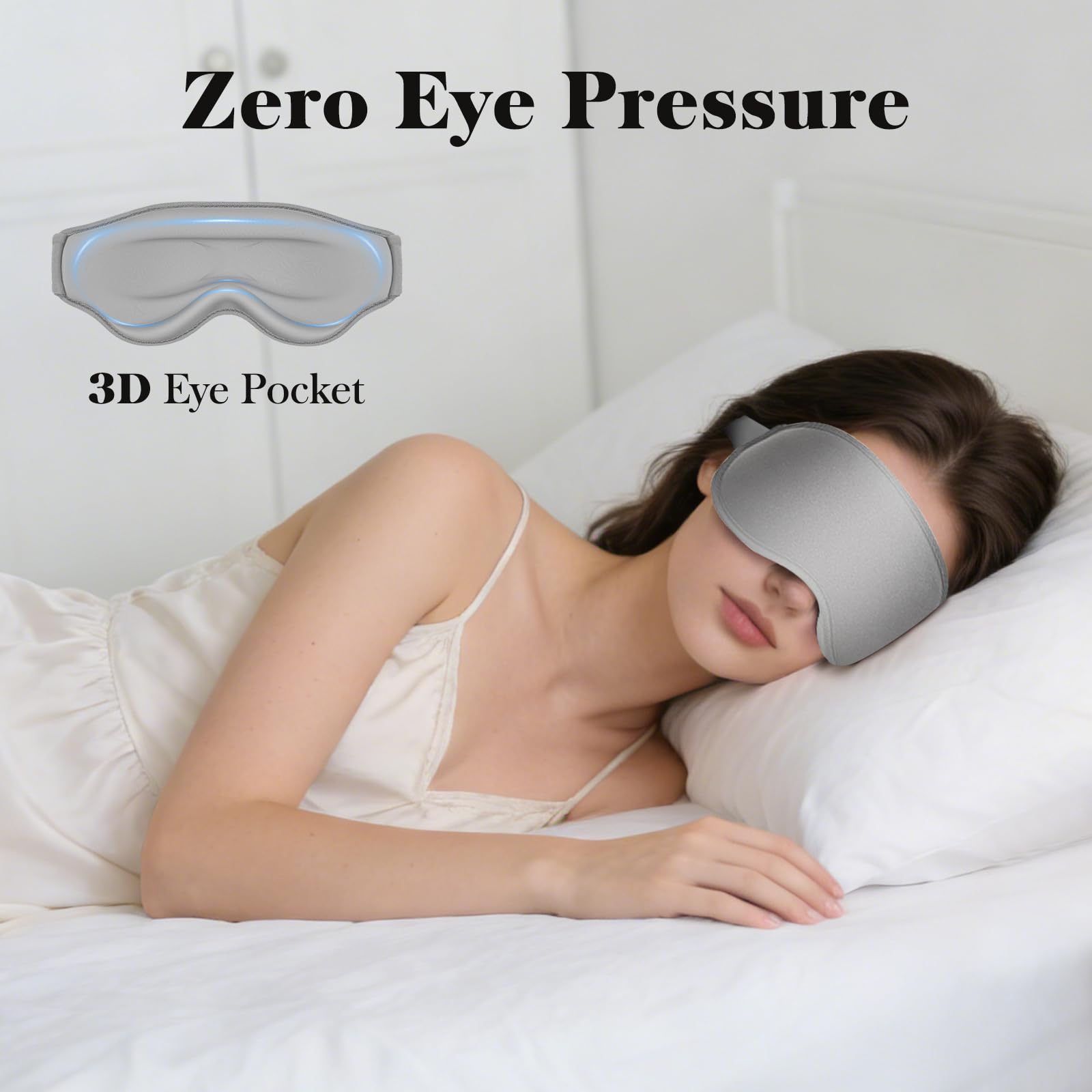 【100% Pressure-Free】: Patented 3D contour design with deep & wide eye pockets provides large space for your eyes to blink freely and put non pressure on your eyes.