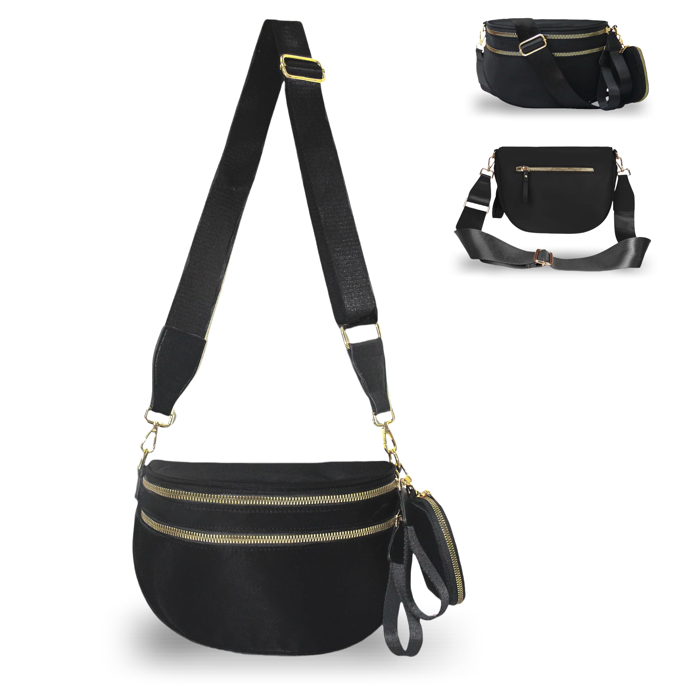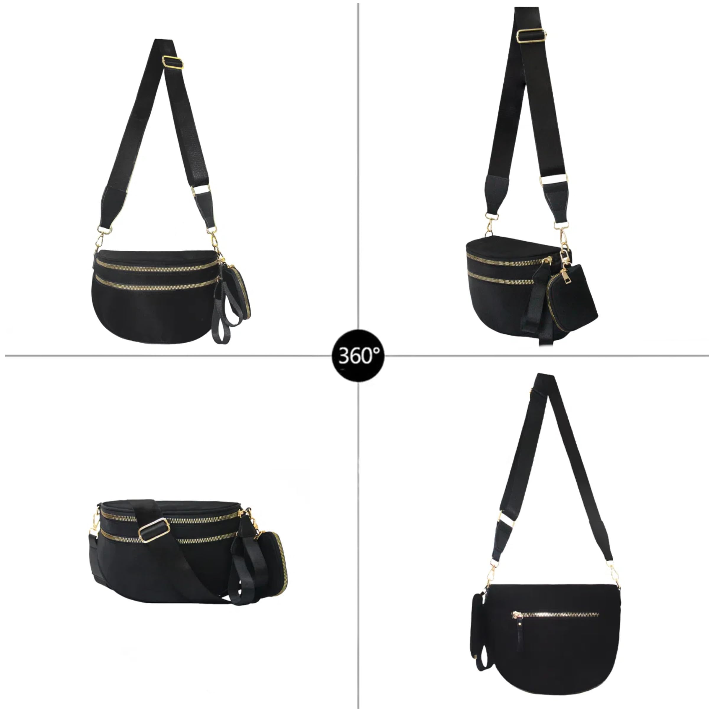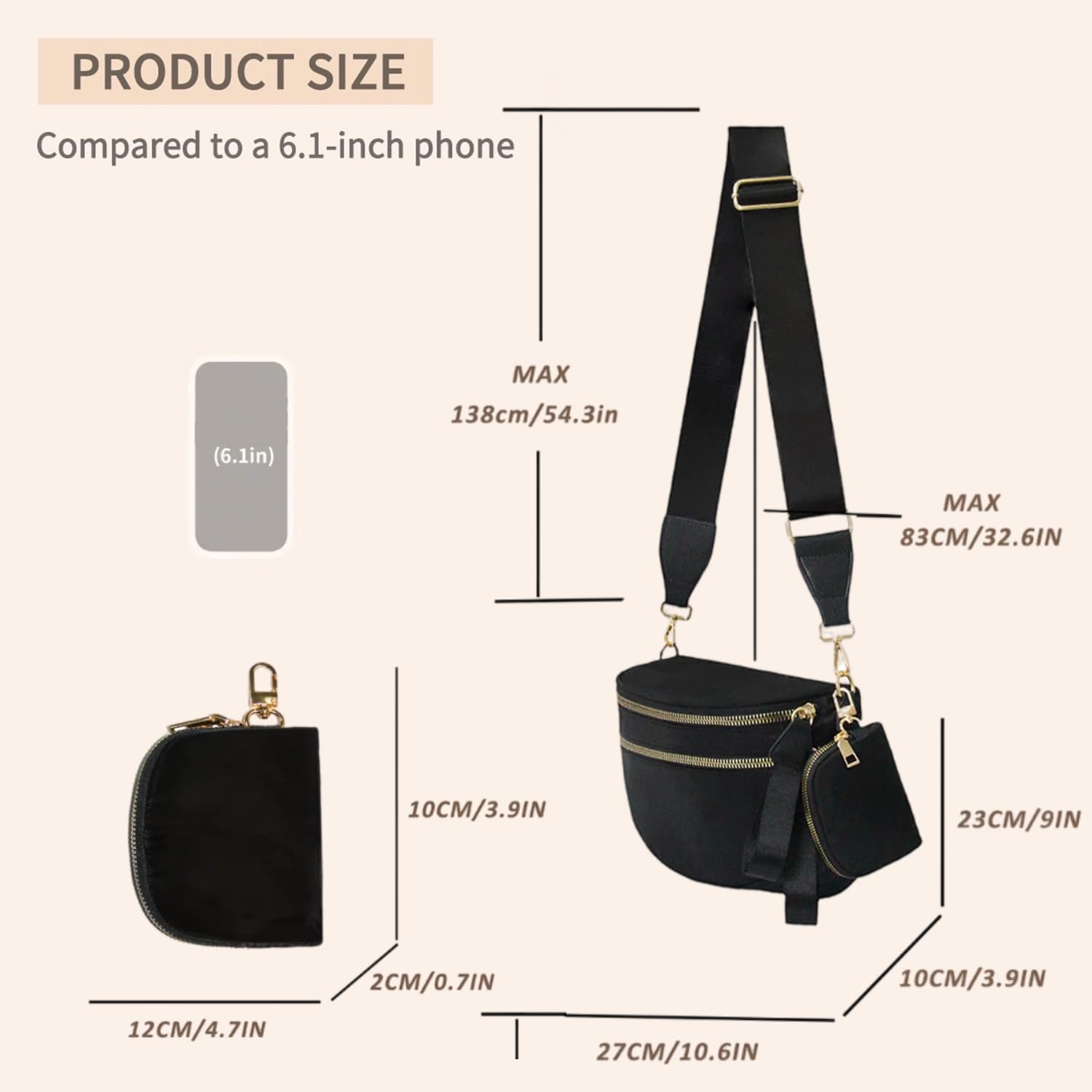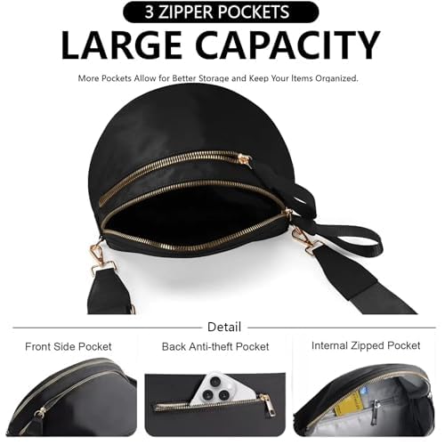 【Smart and Organized Design】Featuring a double zipper system with two separate compartments, this women's bum bag helps you keep your items neatly arranged. It also includes an interior hidden pocket for safeguarding valuables and a back zippered pocket for quick access to your cell phone while on the go.