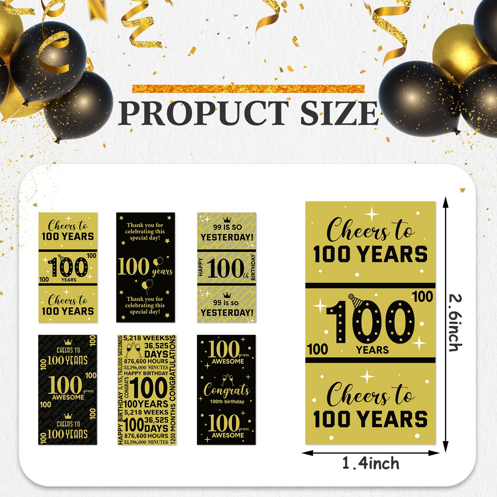 Thoughtful and Harmless: these 100th birthday decoration label stickers are made of quality shiny adhesive paper, which is odorless and reliable, wear and tear resistant; They are very easy to be pasted and peeled without leaving residue, giving you a nice using experience