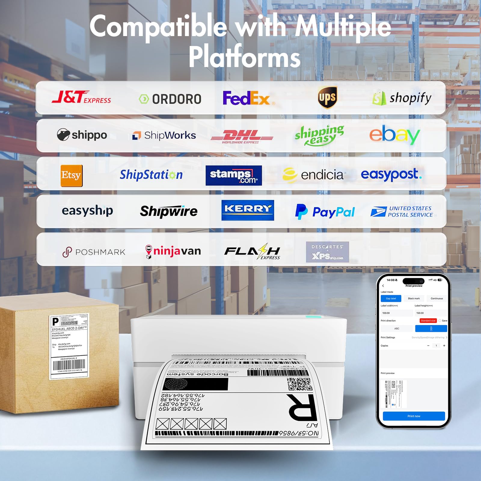 Wide Usage: The thermal printer is widely used for printing labels from various marketplaces and shipping platforms, such as Amazon, eBay, ShipStation, ShippingEasy, Shopify, UPS, FedEx, USPS, Shippo, etc.